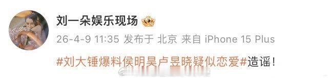 网传刘大锤爆料侯明昊、卢昱晓疑似恋爱,刘大锤关联账号说是造谣