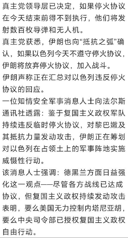 伊朗方面已经明确告知调停方,即将在巴基斯坦举行的美伊谈判,必须以黎巴嫩全面停火为基础,如果以色列不停止对黎巴嫩的袭击,伊朗不仅不会参加谈判,还会重新考虑停火安排,甚至对地区侵略者做出强硬回击。