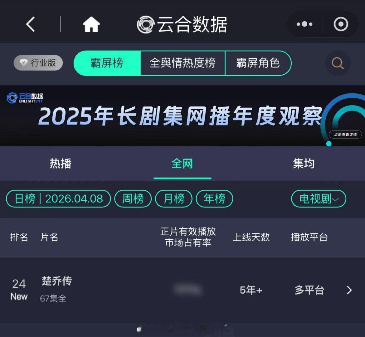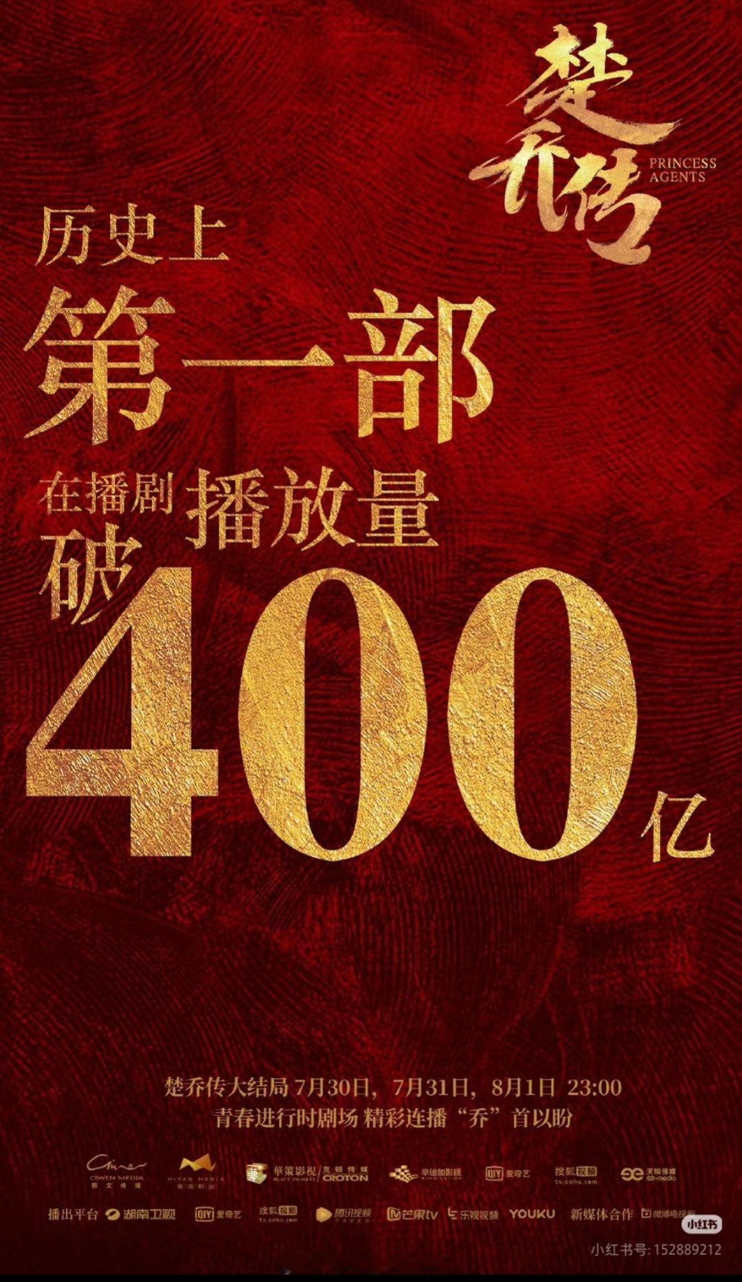 赵丽颖《楚乔传》重回电视剧霸屏榜!历史第一部在播剧播放量破400亿的电视剧!