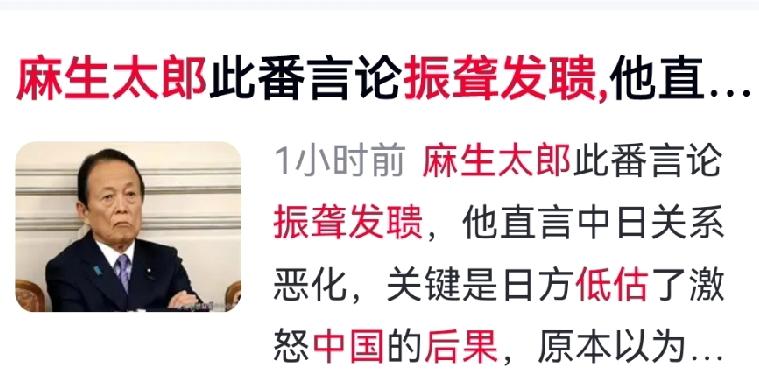 振聋发聩!日本自民党元老、前首相麻生太郎近日罕见公开承认:中日关系恶化,根源在于日方低估了触怒中国的严重后果!