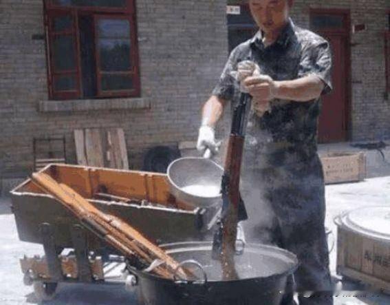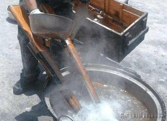 这种方法成本低、可靠性好,枪械能长期封存。不过缺点也很明显,就是启封时非常麻烦,要刮油、清洗、除脂(有时候要用大锅来煮,参见图2~3),耗时很久。