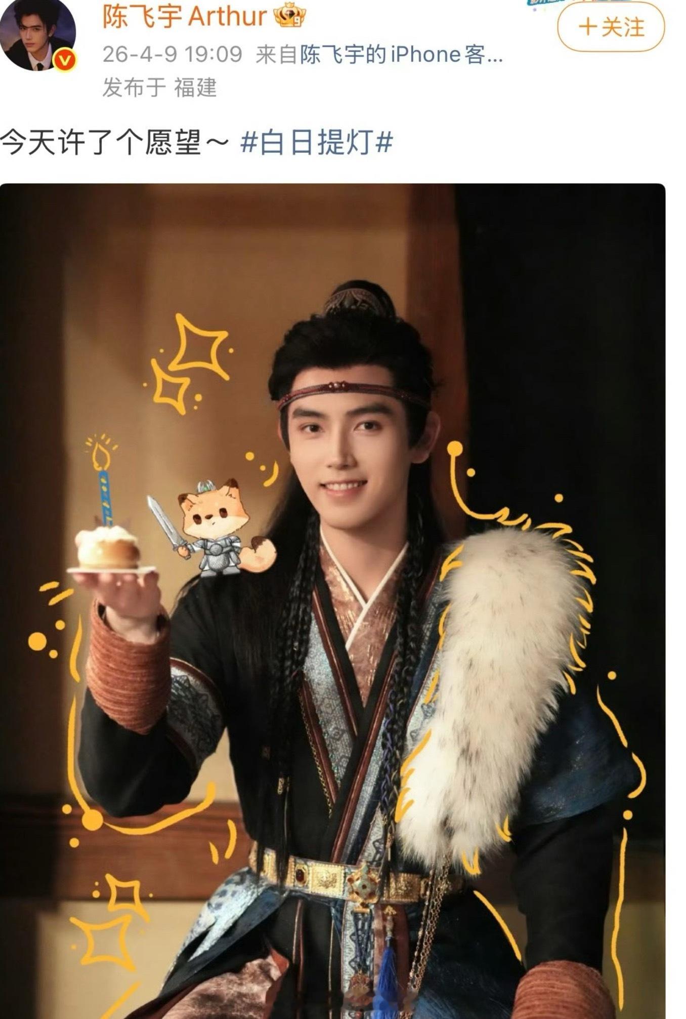 迪丽热巴给陈飞宇生日祝福, 最近俩人互动的比较频繁热巴都是铁粉了友谊长存呀