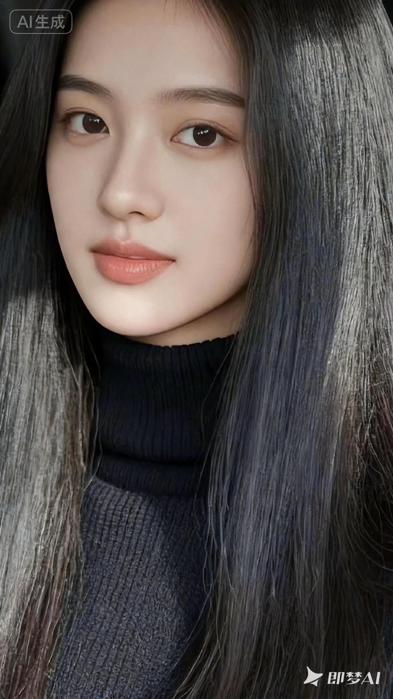 温柔黑发,甜美微笑,梦幻女孩