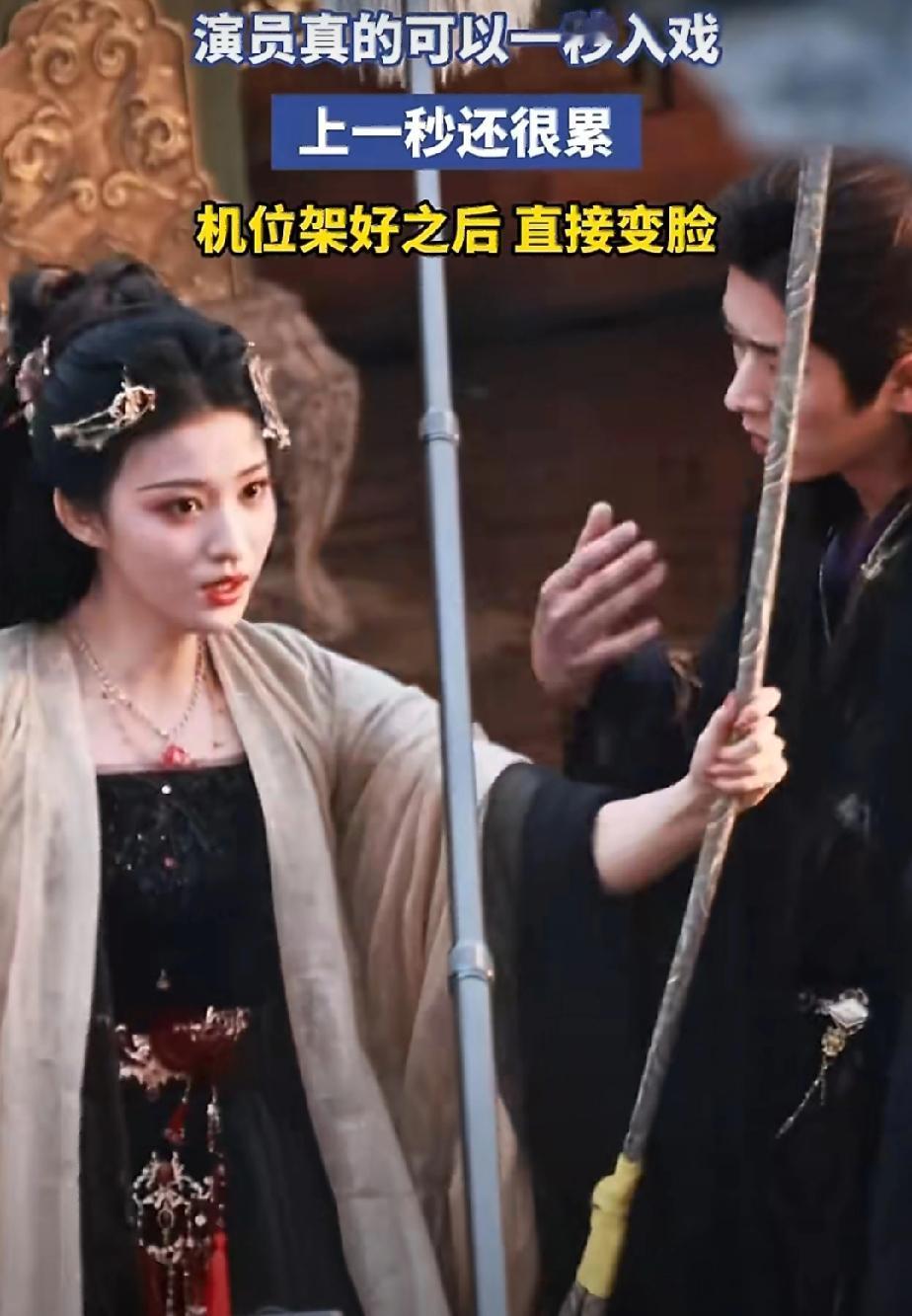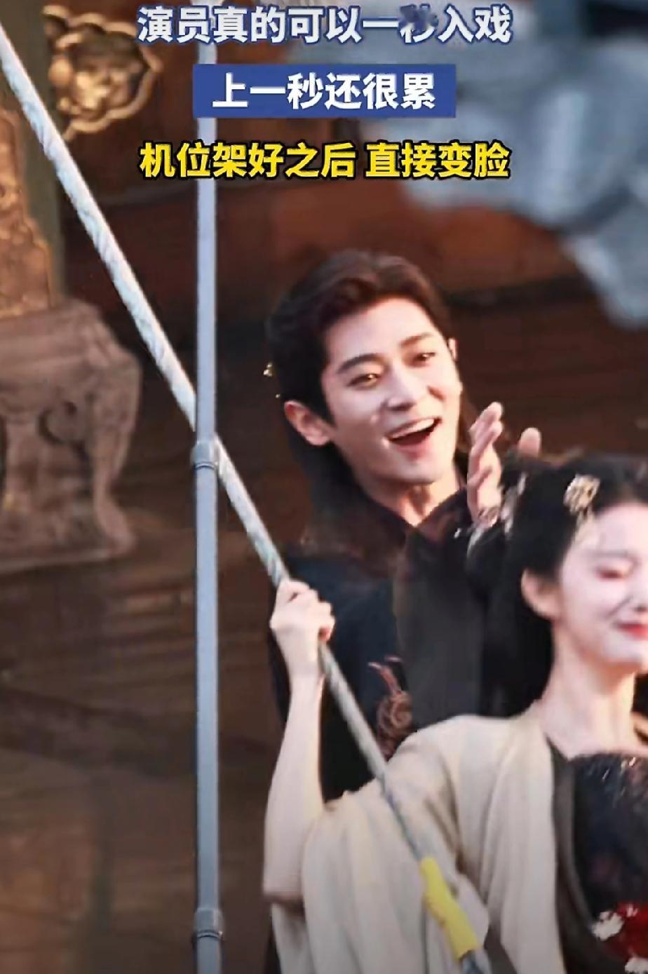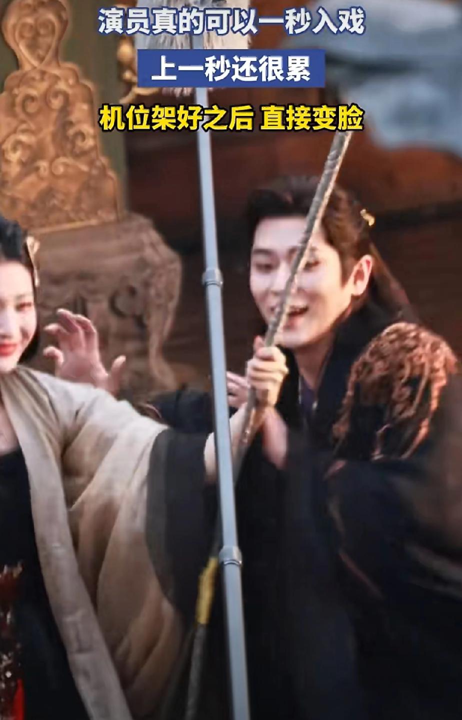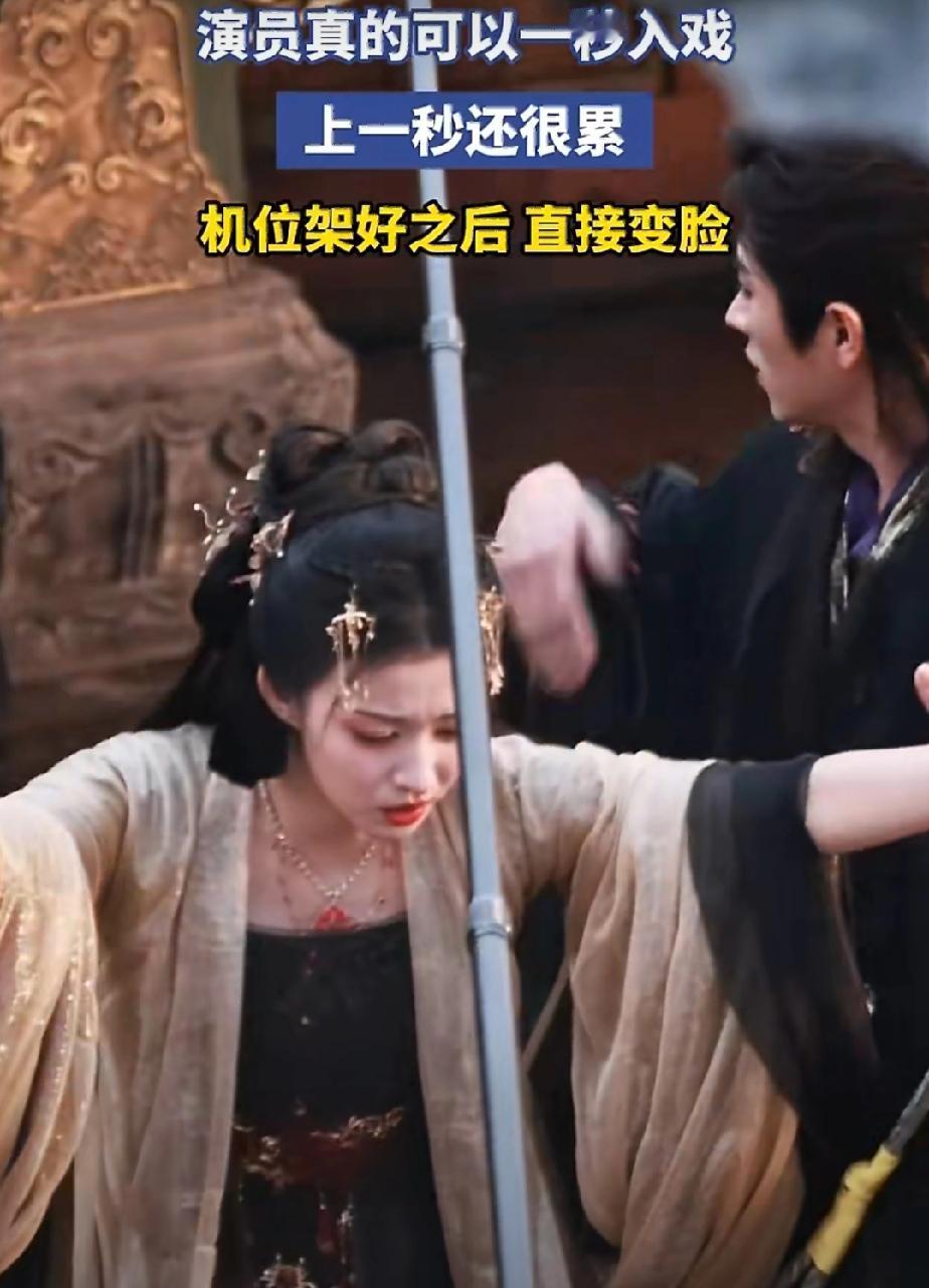 还有那种上一秒裹着厚厚的衣服瑟瑟发抖,下一秒外套一脱表情就变了,只要导演一喊开始,就能瞬间入戏,变回剧里的角色,这就是演员的敬业精神。