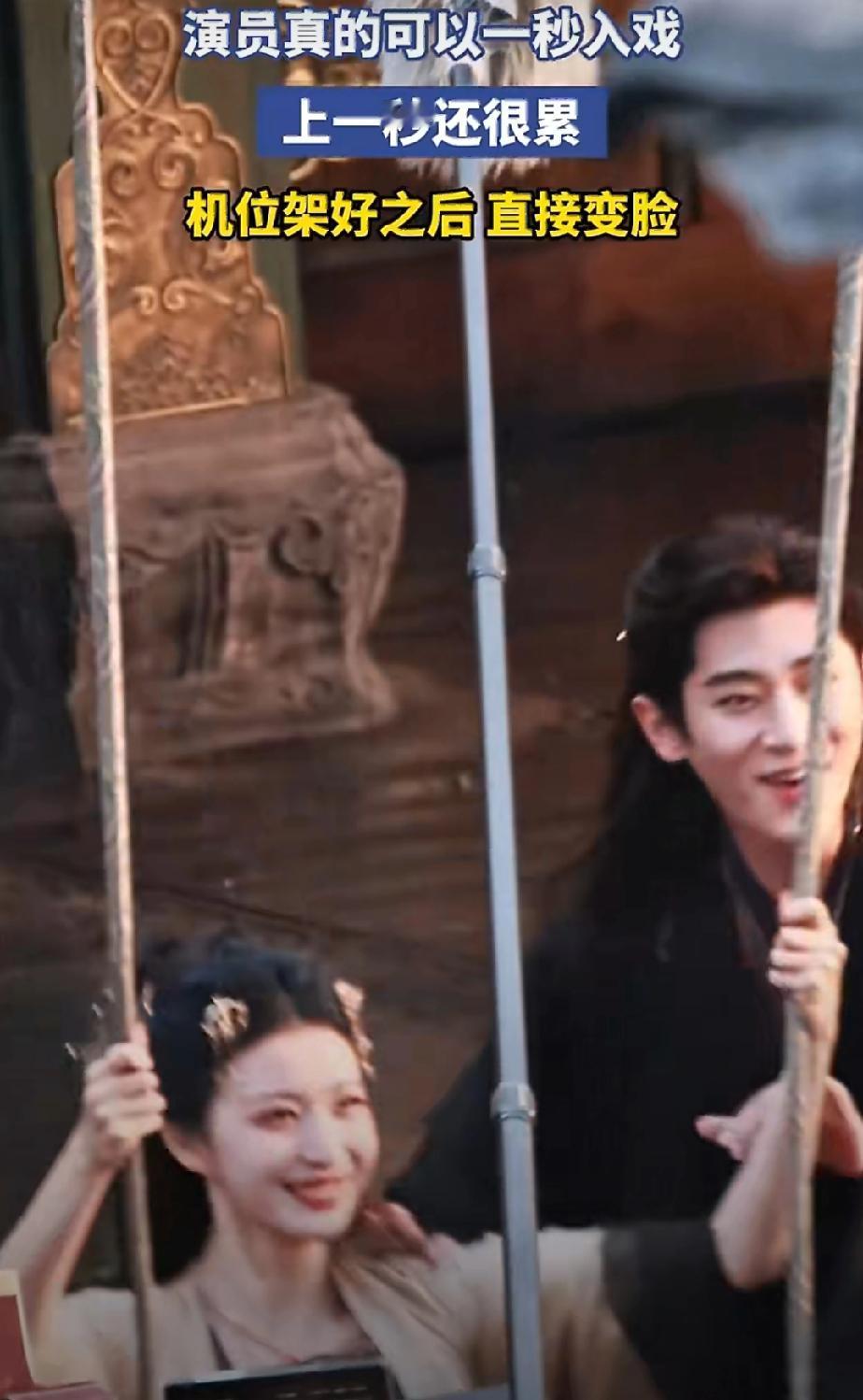 演员真的可以一秒入戏,前一秒丞磊还在累的甩手腕缓解酸痛,王楚然脸色也不好,下一秒导演喊开始,两人瞬间入戏,脸上都是喜悦和甜蜜,仿佛刚刚那个甩手喊累的不是他们。