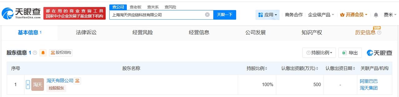 天眼查工商信息显示,4月9日,上海淘天供应链科技有限公司成立,法定代表人为陈明,注册资本500万人民币,经营范围包括供应链管理服务、互联网销售、软件开发等。股东信息显示,该公司由淘天有限公司全资持股。
