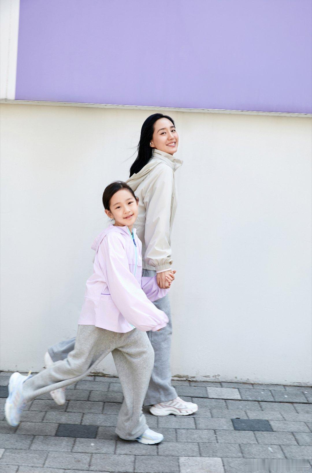 王智带女儿运动打卡 王智和女儿的亲子装 春日遛娃穿搭范本