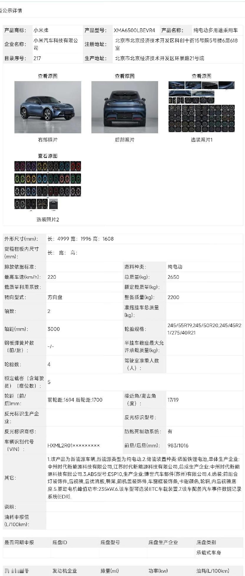 小米YU7入门级版本工信部最新公告的小米YU7出了个更低低电池的版本,这应该就是