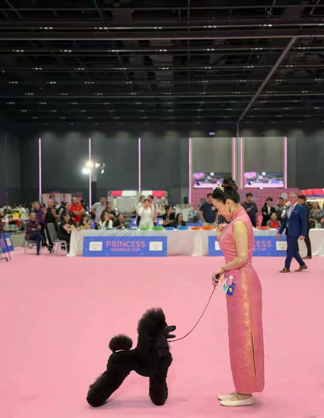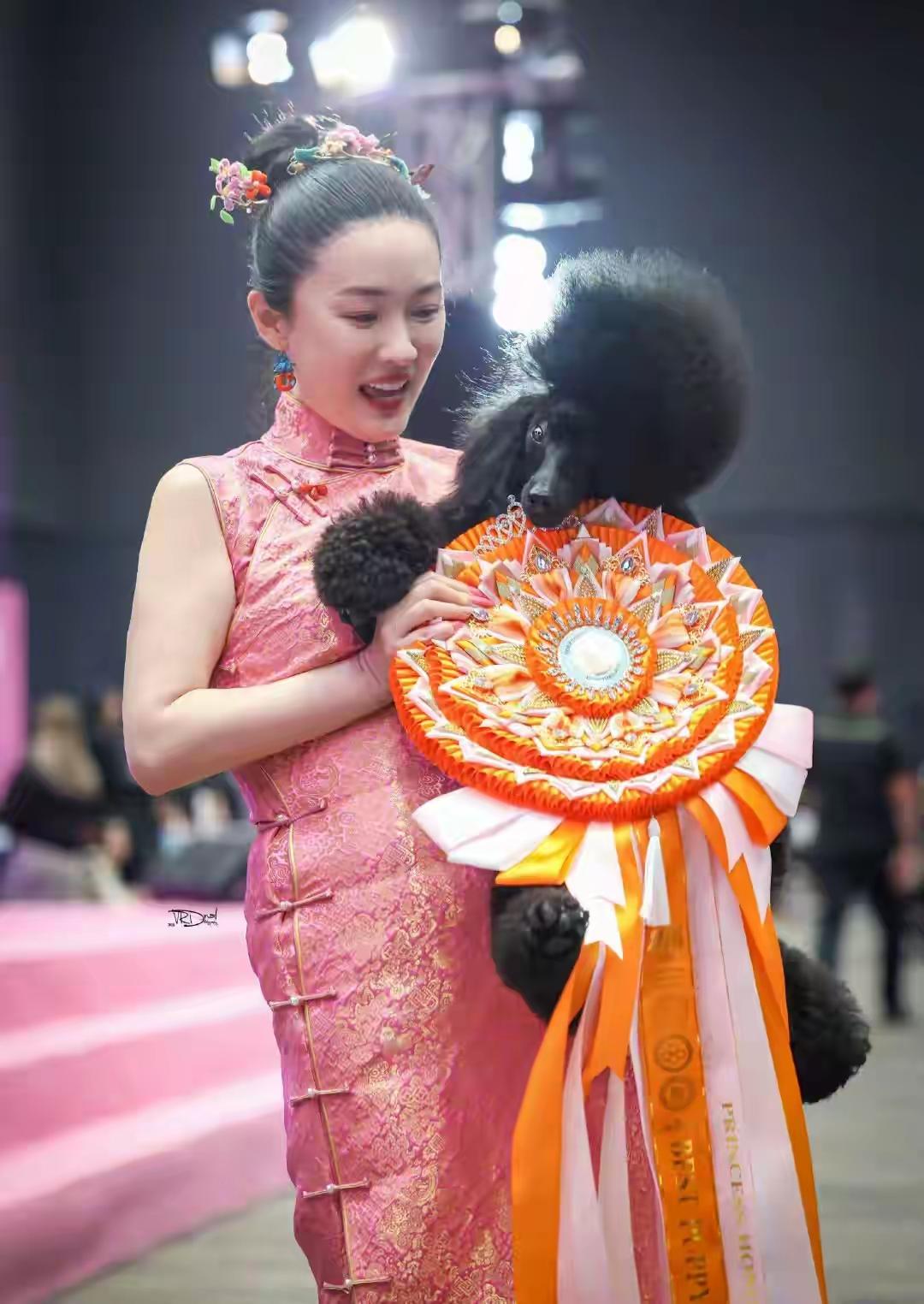 她穿旗袍,不卑不亢带着狗狗参加比赛,镜头下是美的。