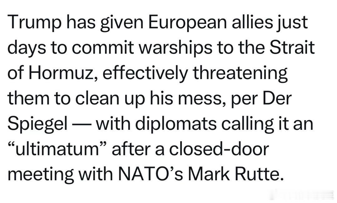 北约秘书长到访白宫,Trump极限施压:两天内拿出具体计划,保障霍尔木兹海峡航运畅通
