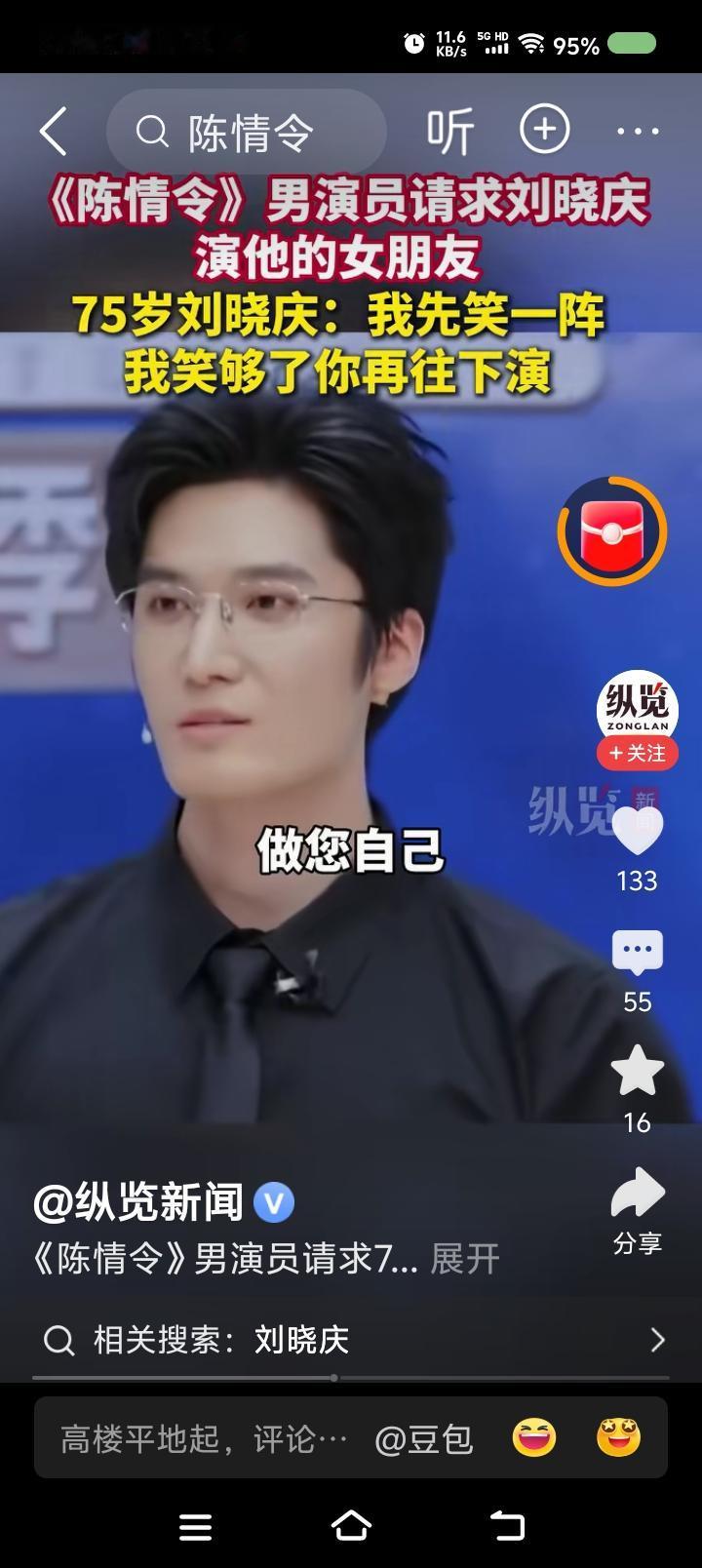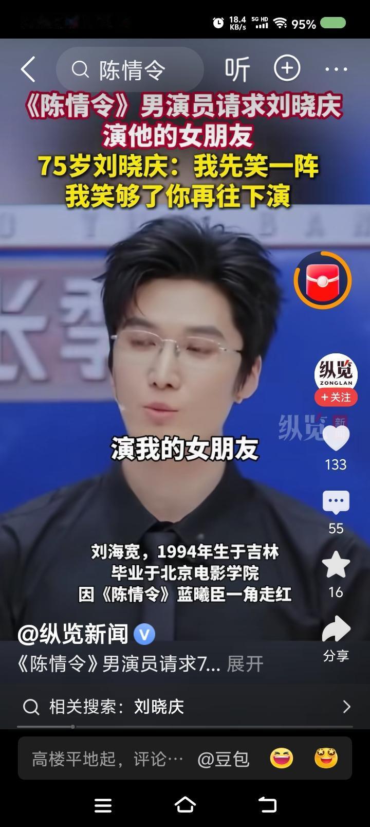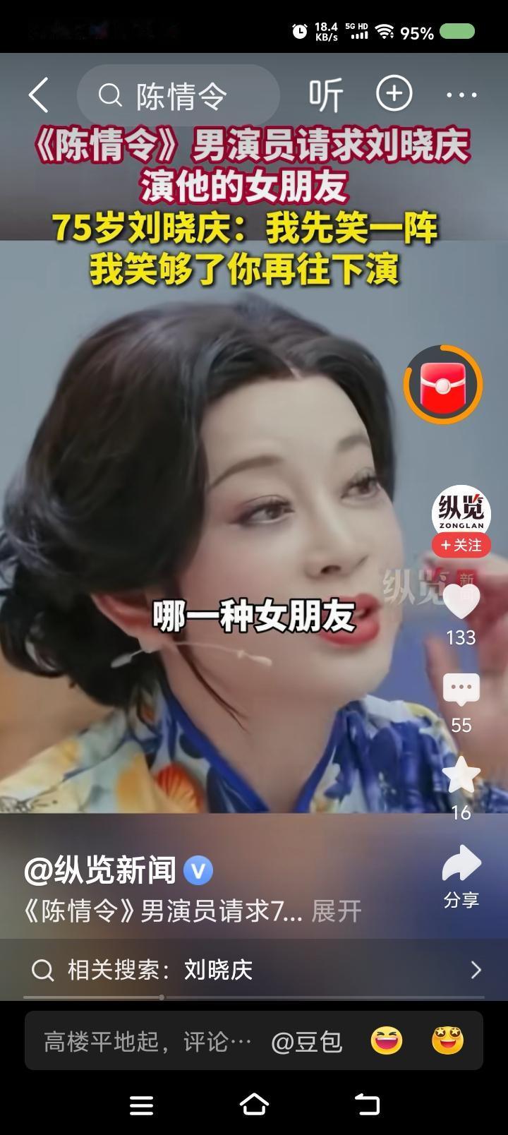 据报道,某90后演员说:“希望晓庆姐演我的女朋友。”