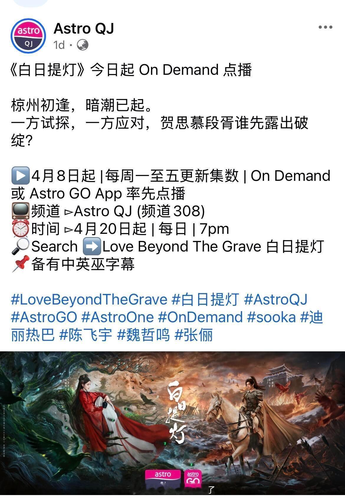 迪丽热巴《白日提灯》空降马来西亚Astro,此前已经登顶WeTV各项榜单TOP1,真是给制作方赚爽了白日提灯