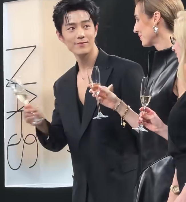 这过程中右边隔着硕大粉底液的女士也走了过来,主动与肖战碰杯,能看的出肖战非常受大家的认可与欢迎!