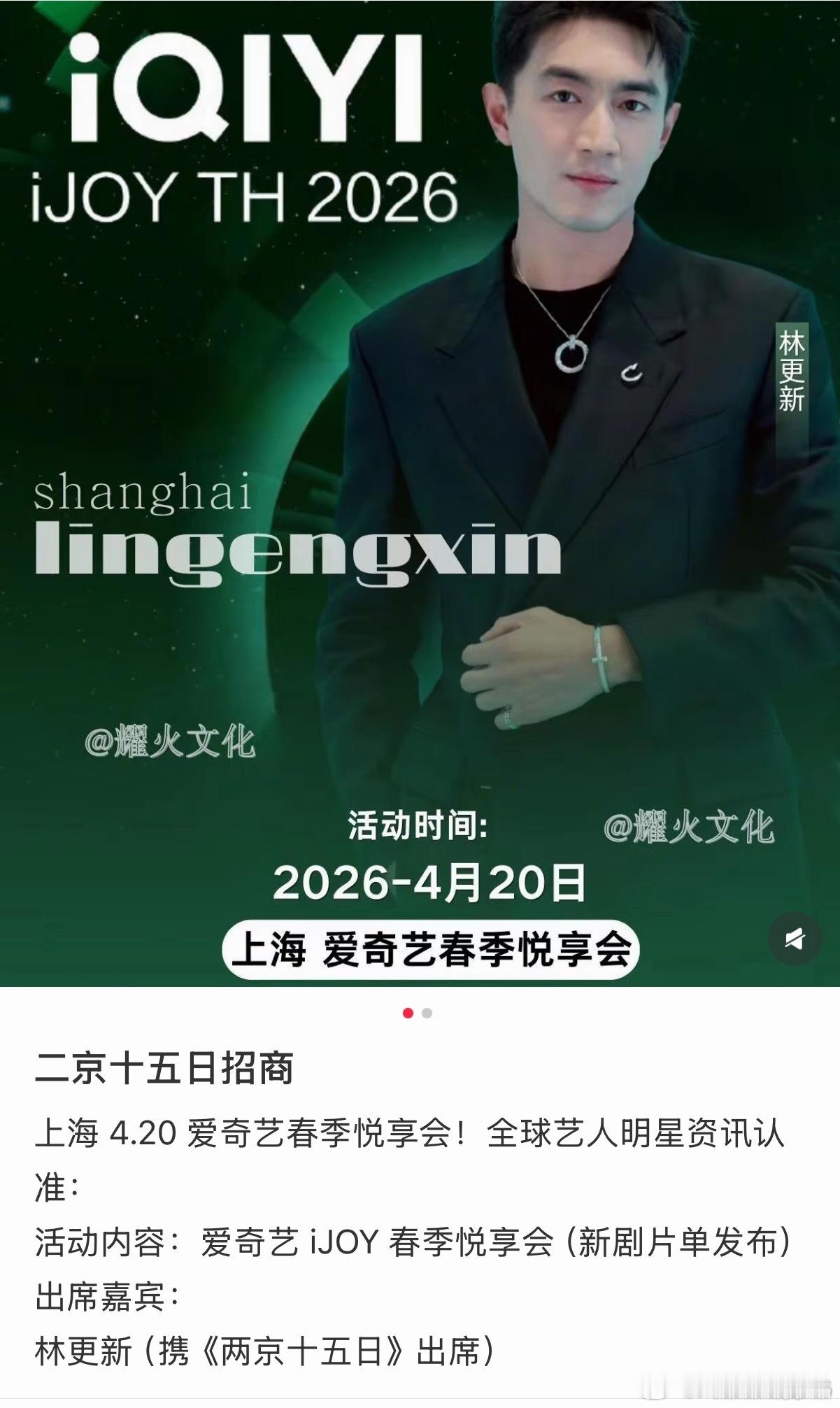 知道为什么只有林更新去爱奇艺悦享会宣传两京十五日了吗?因为去年悦享会,在有剧本的