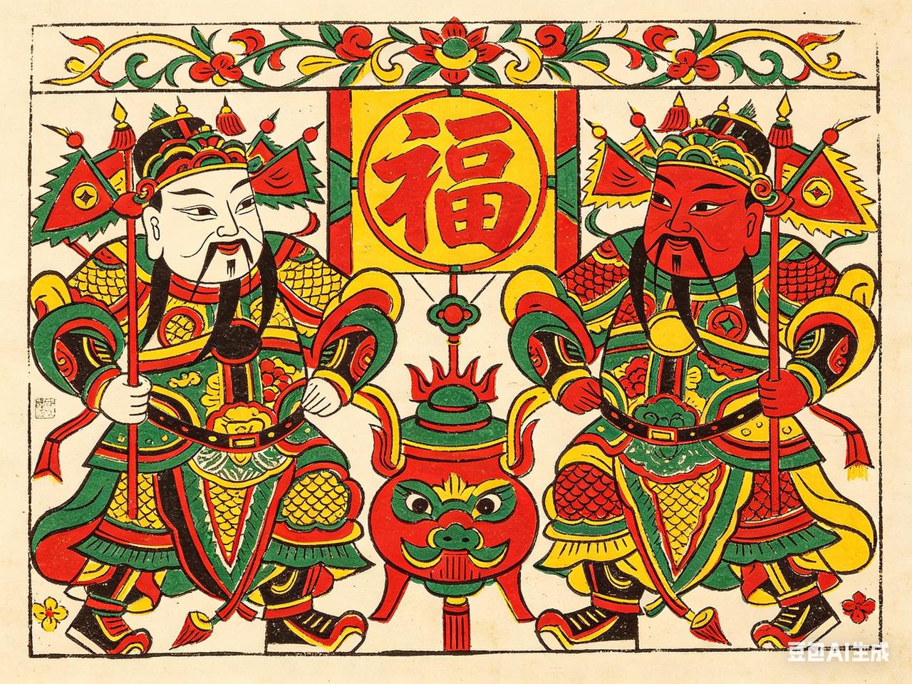 朱仙镇木版年画,国家级非物质文化遗产。别被"非遗"两个字吓跑,说白了,这就是一千多年前中国人过年贴的门神。一张木板、几把刻刀、几种颜料,匠人一刀一刀刻出秦琼、尉迟恭的威武模样,再手工刷印上色——全过程不靠任何机器。