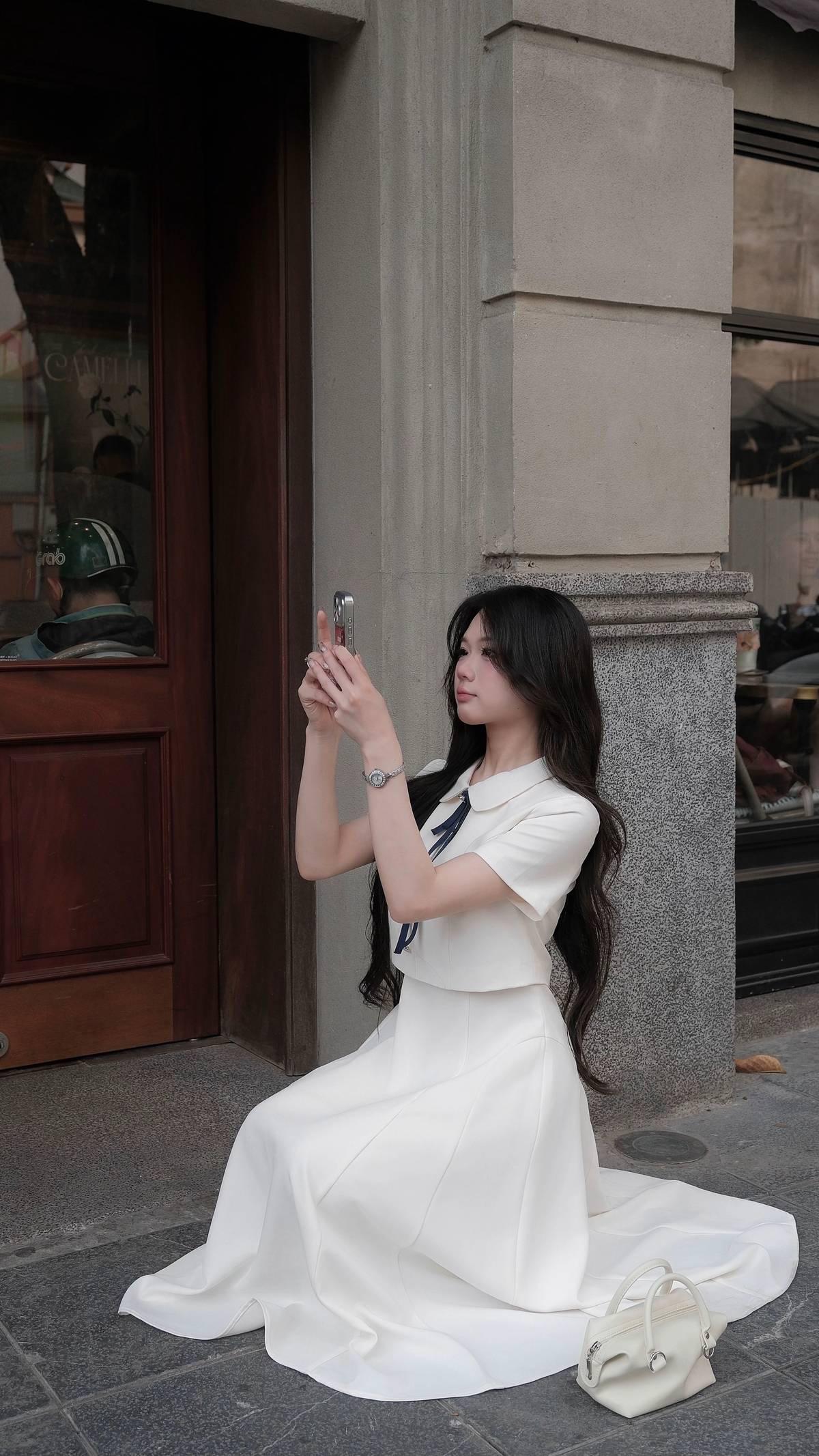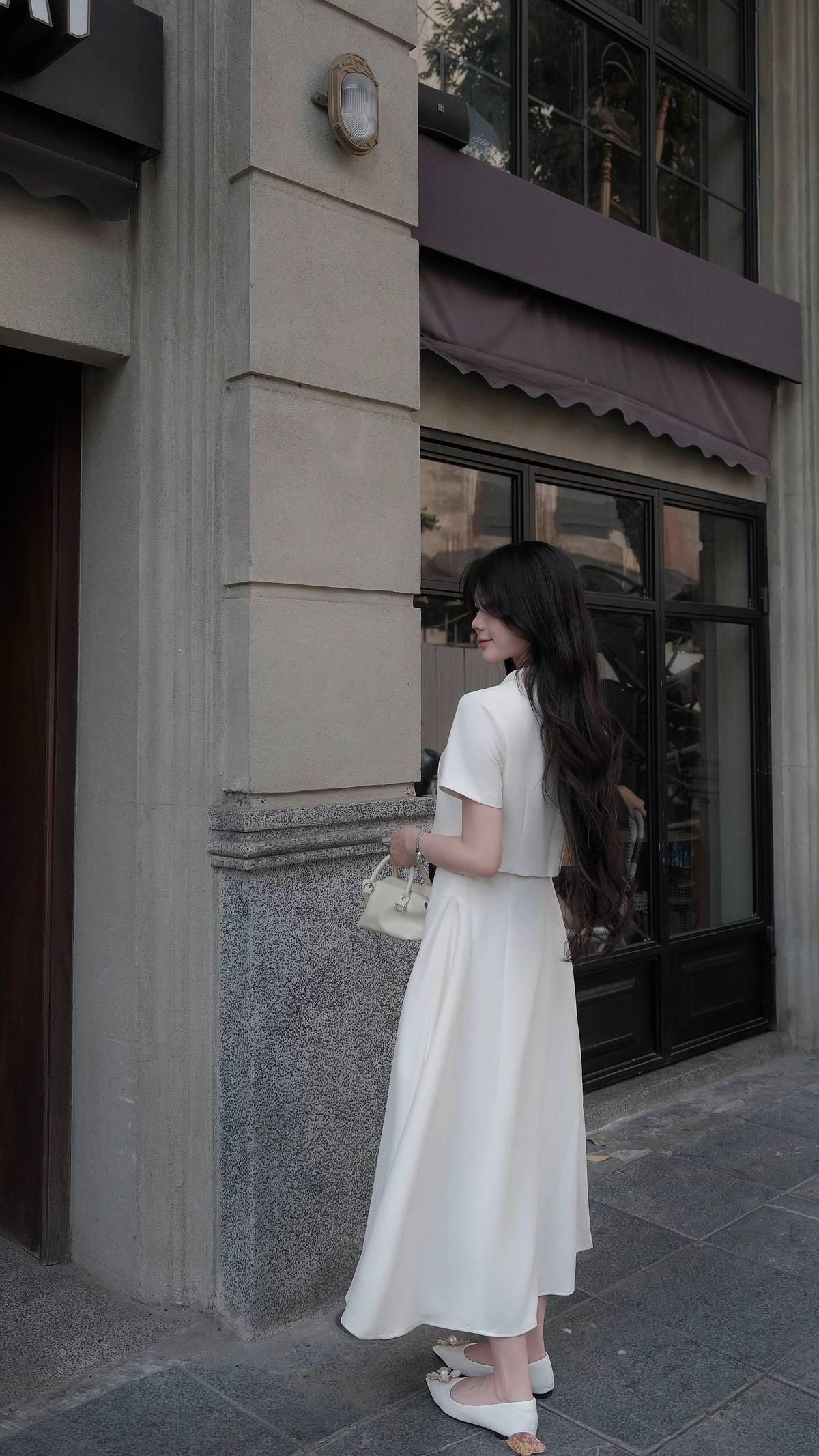 搭配同色系珍珠方头鞋和迷你奶白包,细节感拉满,简约又高级,通勤、约会、下午茶一套全hold住,不费力的精致感拿捏了💫