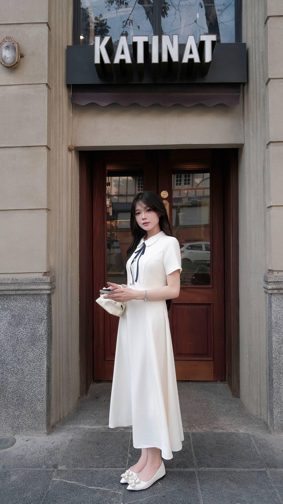 韩系温柔学姐风✨ 通勤穿搭天花板 谁能拒绝一件自带氛围感的白月光连衣裙啊! 奶