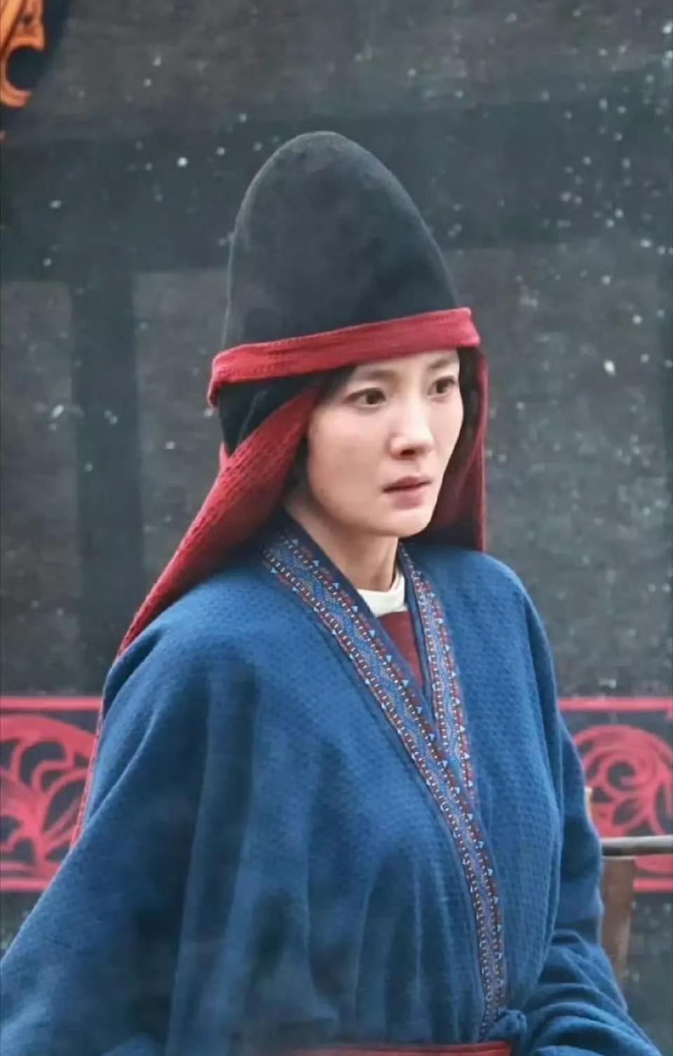 据说杨幂这个造型是冯太后十几岁当宫女时期,圆顶垂裙帽、交领襦裙等设计非常符合女奴时期素雅鲜卑服饰。