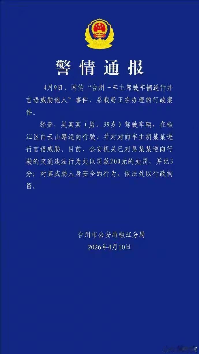 台州保时捷车主肠子都悔青了!他本以为不就是逆行吗,大不了扣3分+罚款200元。没想到踢到了铁板,最终还是因为言语WX,被拘留了起来。