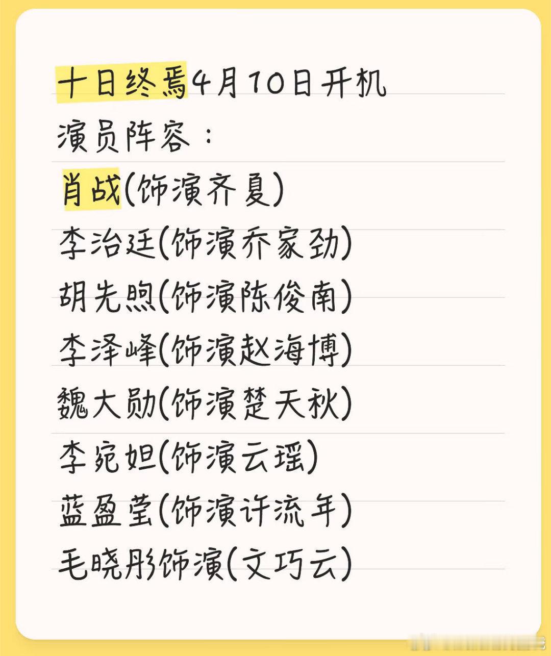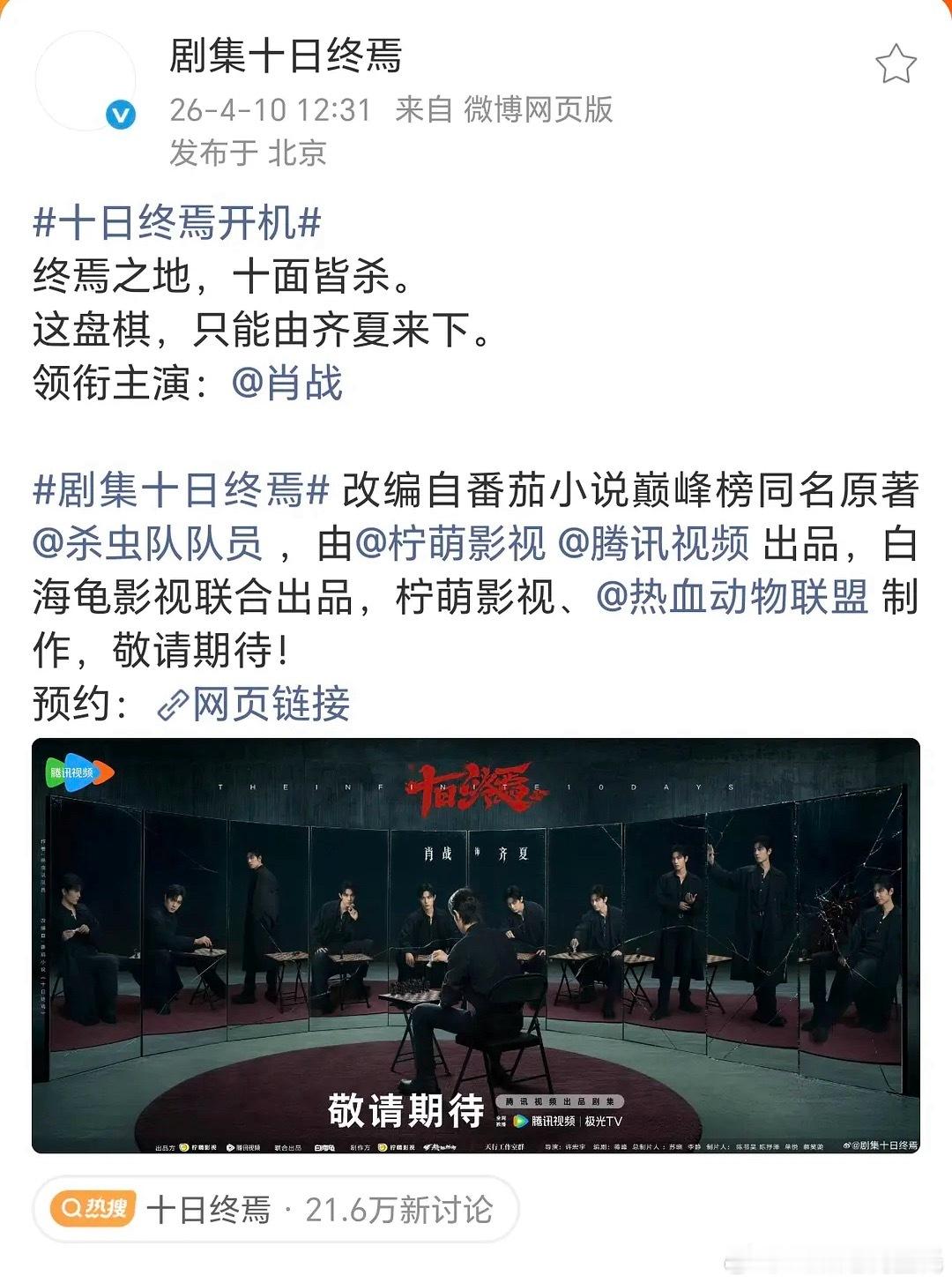 十日终焉开机十日终焉正式官宣宣了肖战,原著作者以及出品方