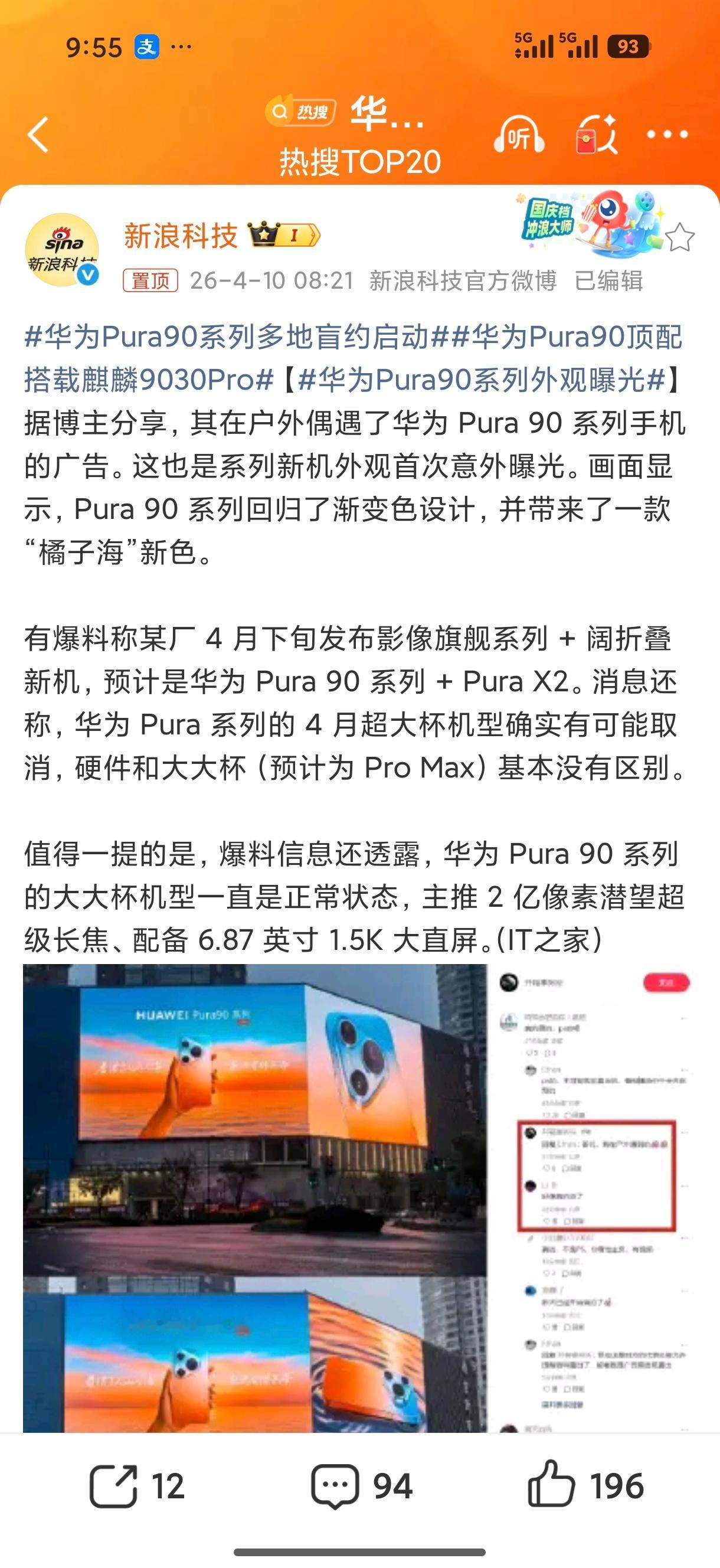 华为Pura90系列外观曝光 华为 Pura 90 系列来了!这次渐变色和橘子海