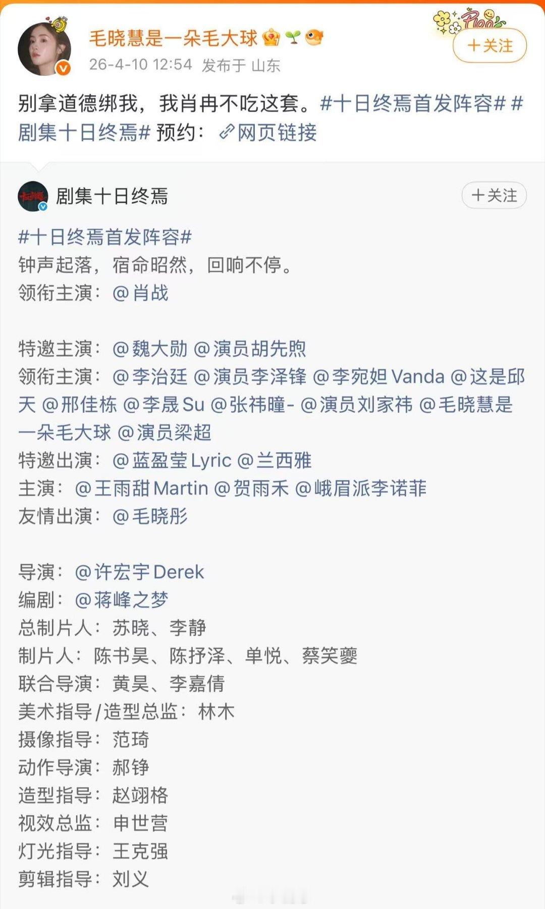 十日终焉毛晓慧演肖冉十日终焉官宣毛晓慧演肖冉 十日终焉首发阵容官宣阵容太惊喜了