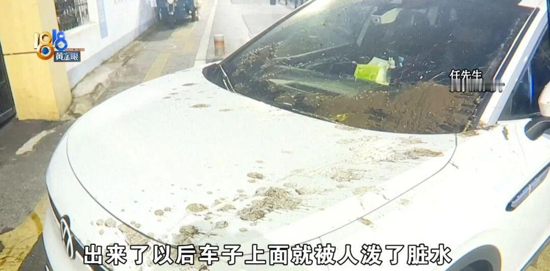 任先生拿完东西前后也就花了三五分钟,可等他回到车前,发现车身全是被泼的脏水,还夹杂着泥沙和废纸,散发着阵阵恶臭。