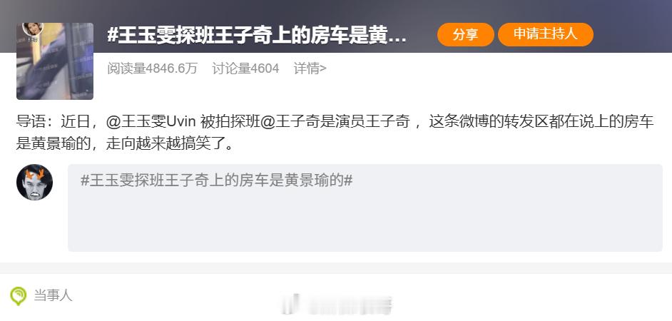 2024年的时候,王玉雯探班王子奇上的房车是黄景瑜的,后来王玉雯还回应过说是朋友