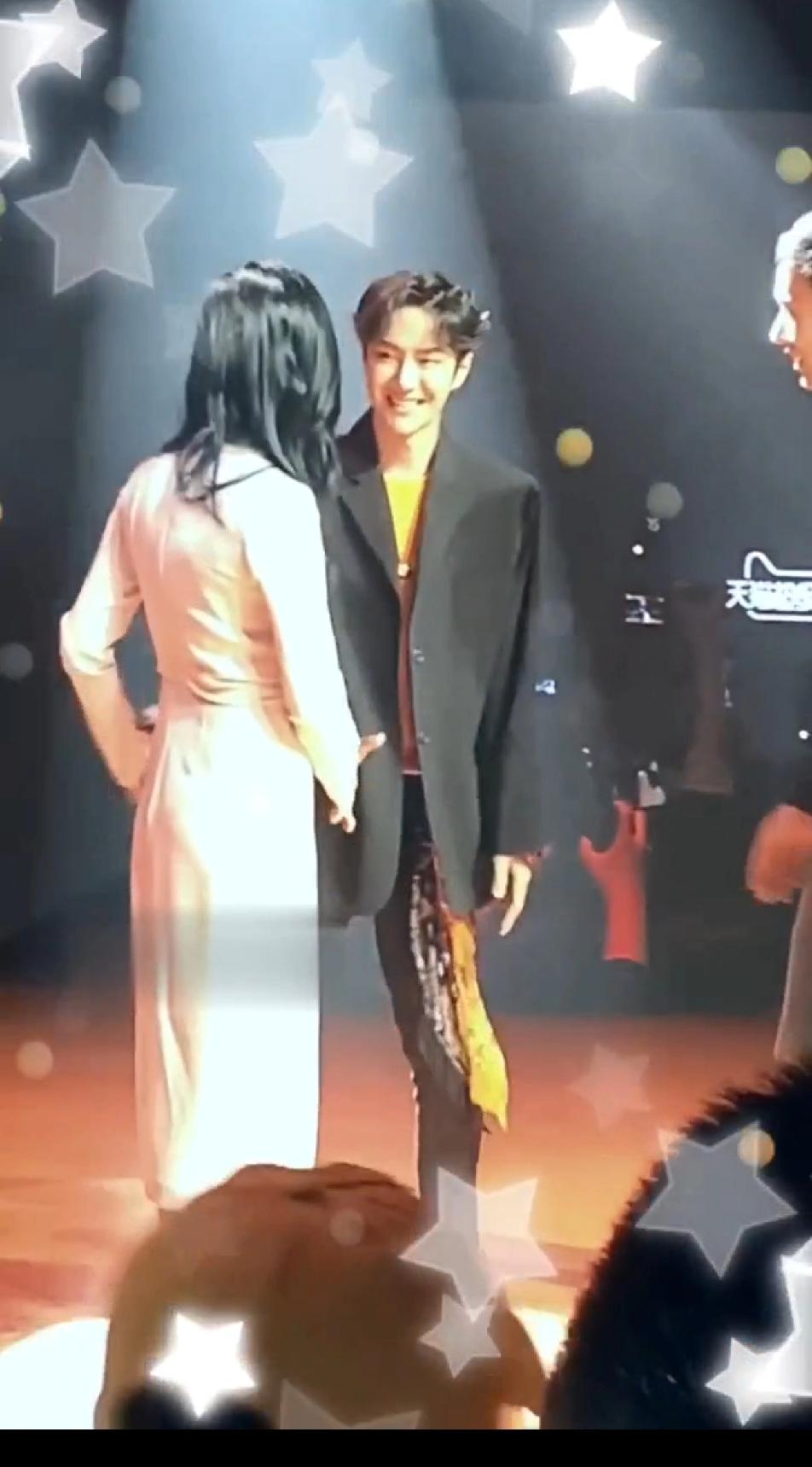 再也看不到王一博当年对着姚晨的那种小心翼翼又带着点腼腆的笑容了,很难看到内敛含蓄的王一博对一个女生露出这样的笑容吧?跟其他人握手时,王一博已经迫不及待的看向姚晨,脸上还带着又甜又羞涩的笑容,眼睛就没离开过姚晨,姚晨也很大气的牵着王一博的手,拍了拍他的手臂,王一博就乖乖的由着晨姐牵着他的手……估计这样的王一博是再也见不到了!王一博