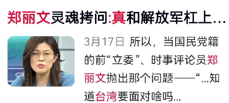 郑丽文问出不敢想的事:真硬碰,台湾拿什么扛过第一周? “你们真以为,打起来只是