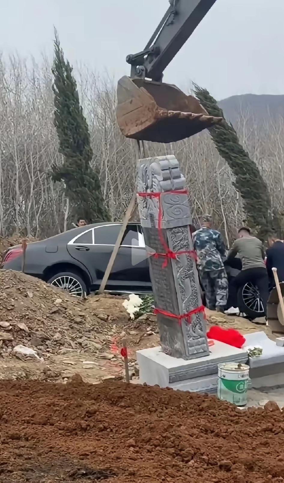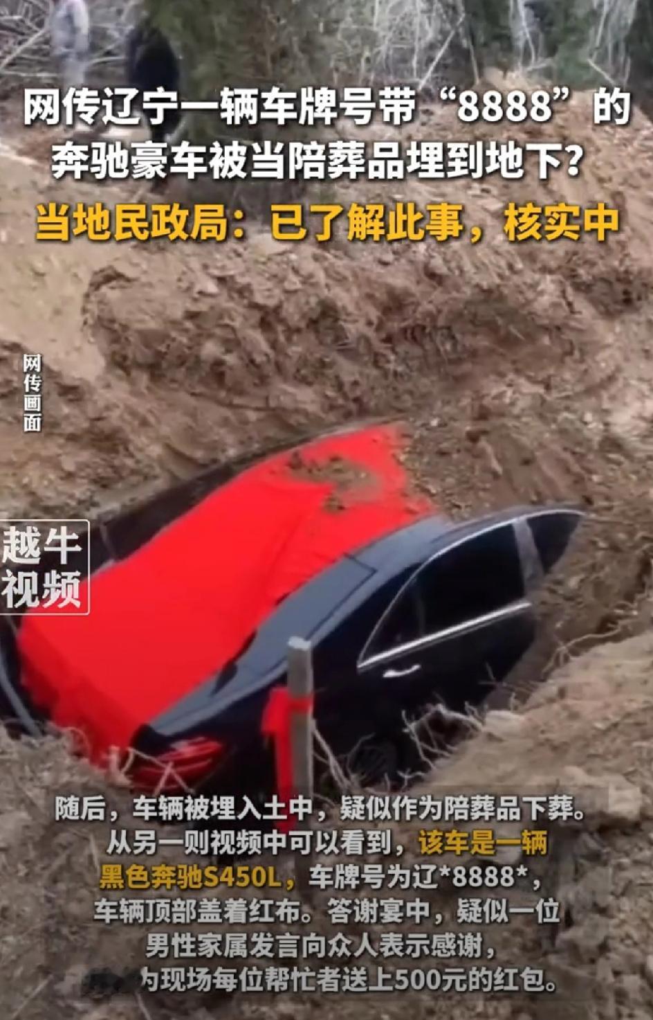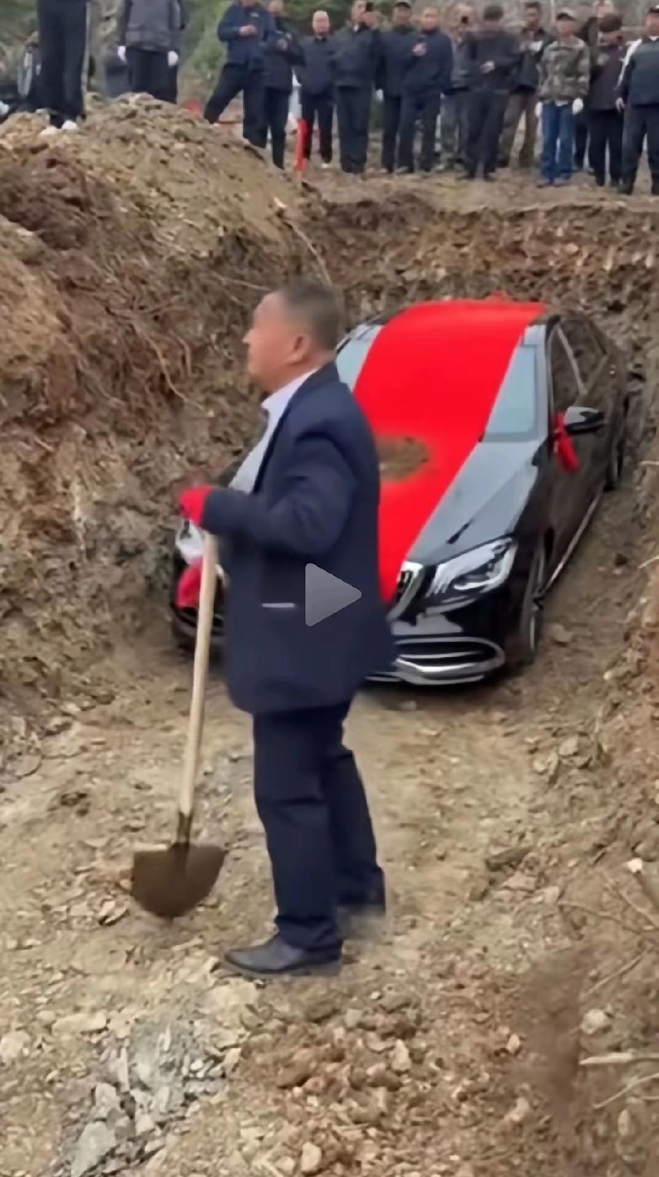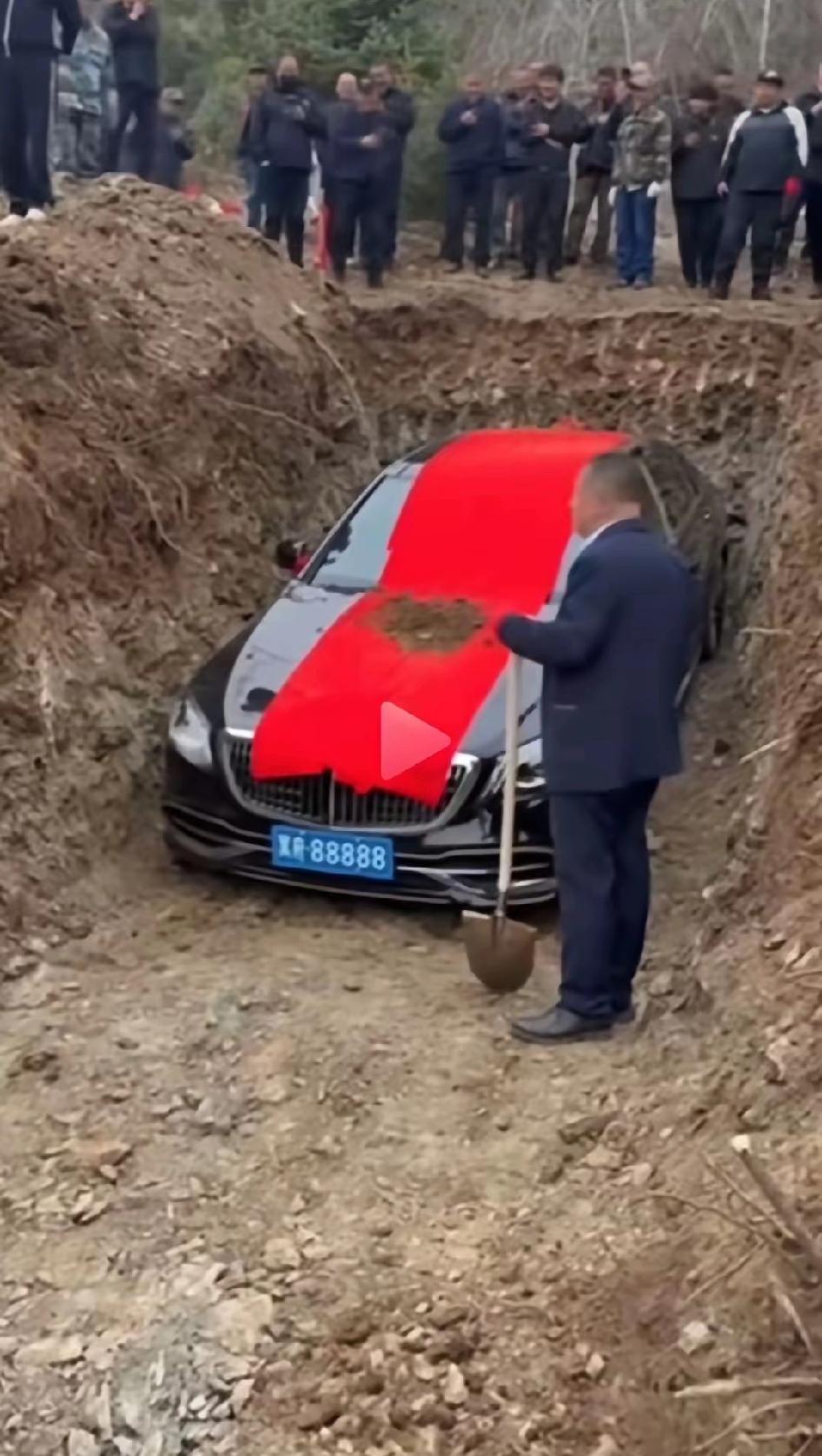70岁企业家去世,陪葬一辆100万的奔驰车,车牌号四个8。4月9日,辽宁沈阳一场葬礼视频引发关注,画面显示一座新修的墓碑旁 ,一辆黑色奔S450L被挖掘机吊起来推入墓坑,并覆盖上土掩埋起来。在场有七八个人帮忙,每人还获得500元红包。因为老人生前特别喜欢奔驰,为了圆老人的梦。关键是这样老人根本开不到,这不是白忙活,车子在地底下时间长了不就腐烂了吗?重金属会不会污染环境?不知道后续会怎样处理,当地民政局会介入,肯定会规劝,重新挖出来。不得不说,老人的晚辈对他确实很有孝心,离世了也不忘孝敬他。但是呢?这种事还是要理性一点,从实际出发。