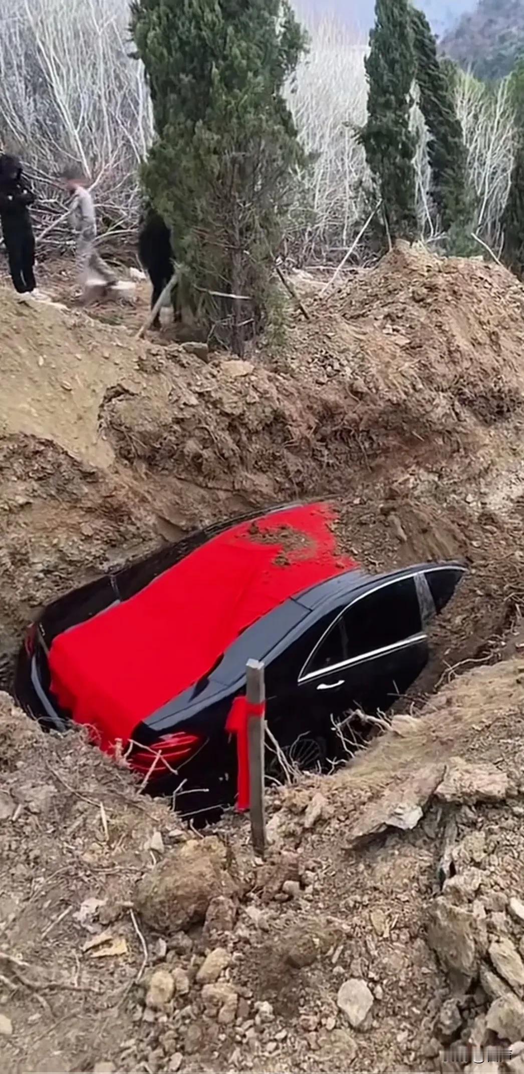可能是哪位老板太喜欢奔驰了,所以才会用真的奔驰陪葬。