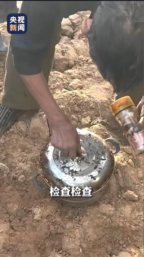 过了一会儿,两位消防员拿着工具,把这个锅给刨了出来。看到锅外表没什么损坏,他们也松了一口气,心想着老人最后这点希望,应该是保住了。