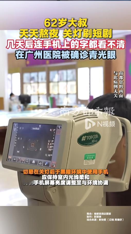 信息来源:《62岁大叔天天熬夜 关灯刷短剧 几天后连手机上的字都看不清 在广州医院被确诊青光眼》南方都市报