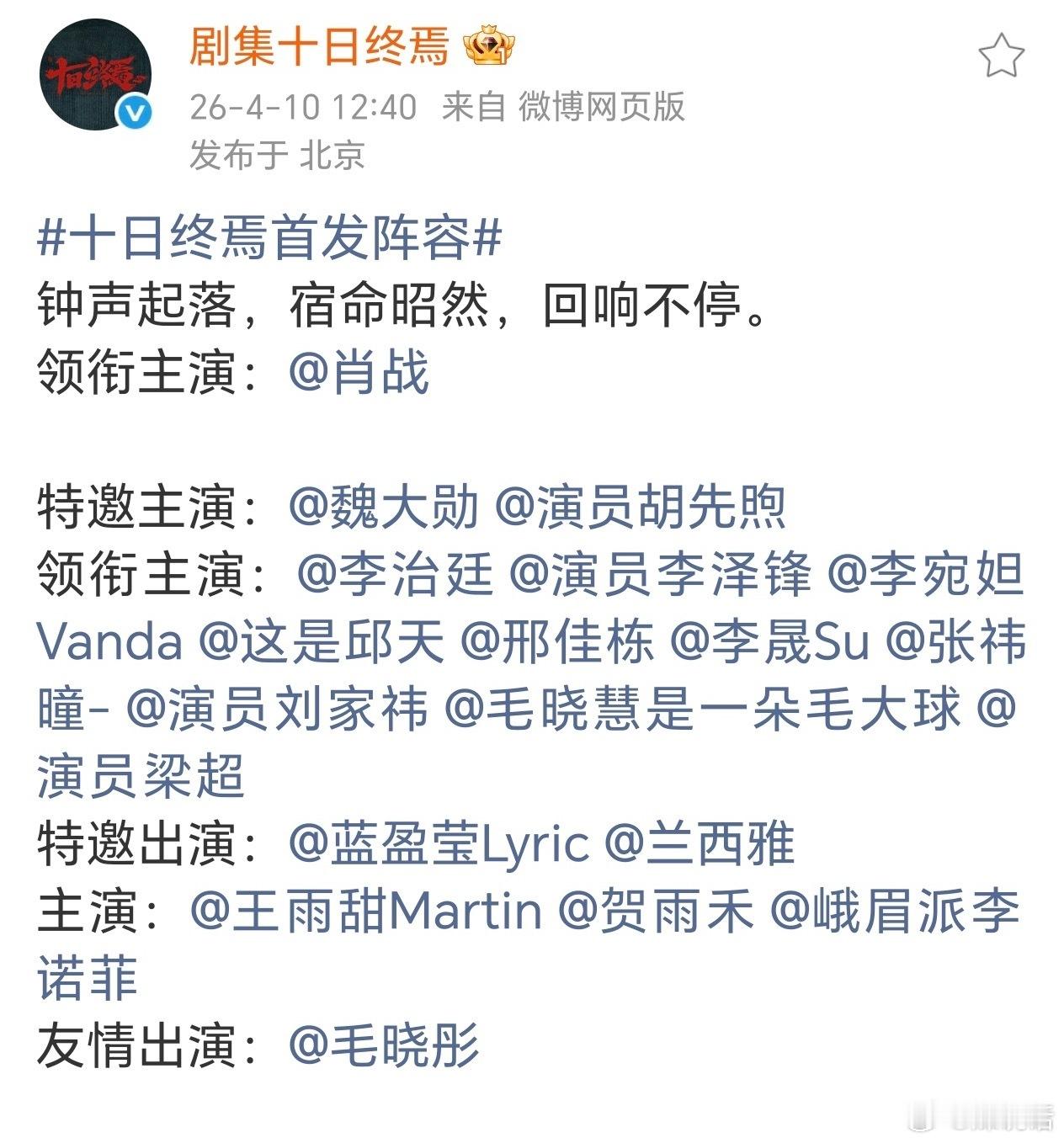 十日终焉开机 李宛妲女主资源真好啊搭胡先煦《异人之下》搭邓为《风月不相关》搭吴磊