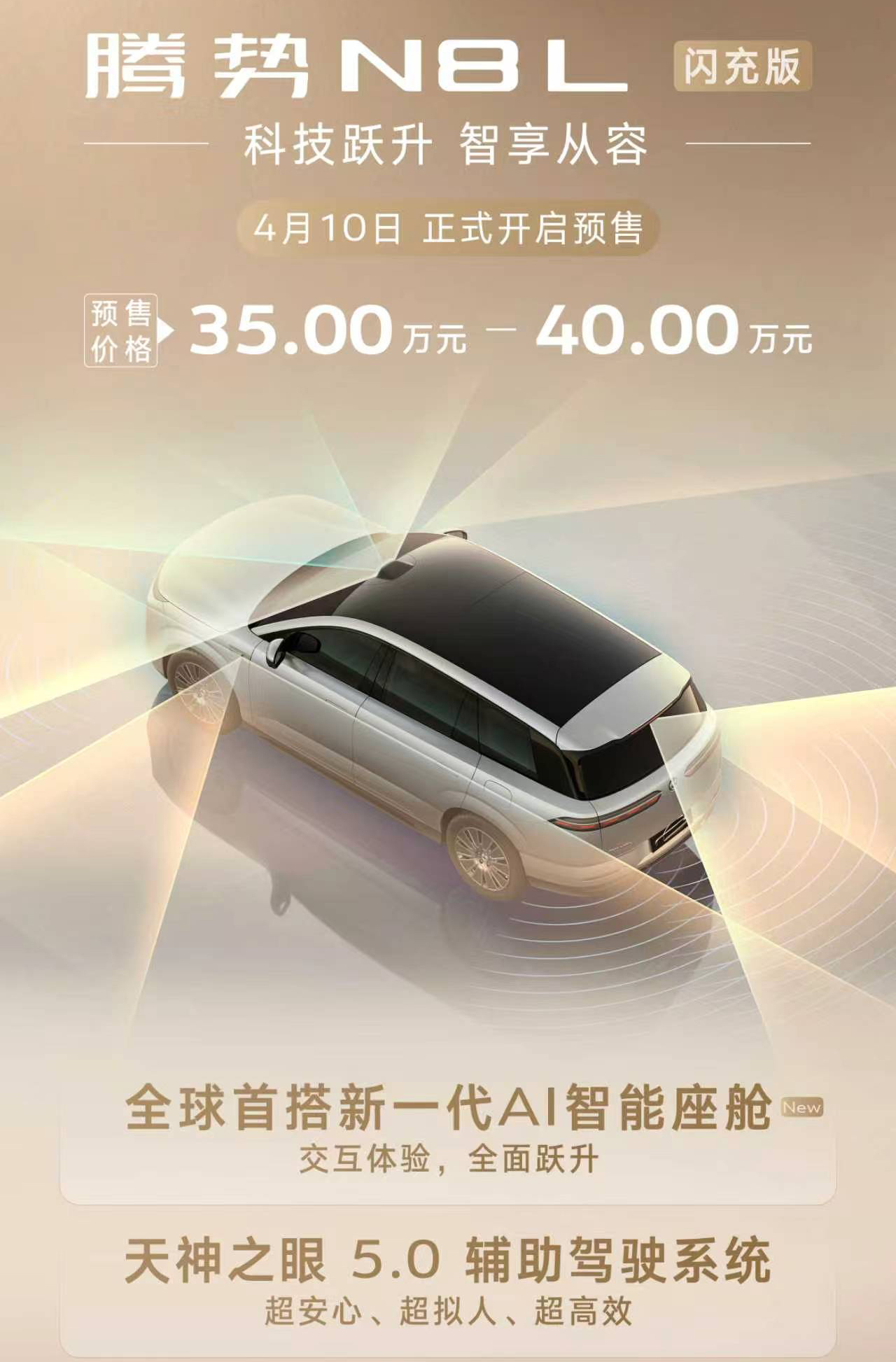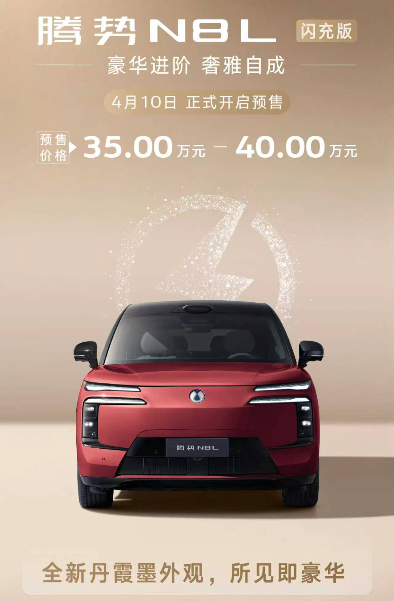 腾势N8L闪充版也也开启预售了!亮点信息简单汇总下,二代刀片电池+闪充技术必须有,易三方插混纯电续航430km,拉倒同级的头顶。同样预售期间多送半年闪充权益,总共一年半时间免费。新车型必须要有新配色,N8L还会推出一个红色版,然后就是天神之眼5.0版本上车,还要升级全新的AI座舱智能,总体来看,升级还是很大的。目前预售价格是35-40万元,按照比亚迪的习惯,这个价格还可以在期待下,不过这次N8L依然没有纯电版本。