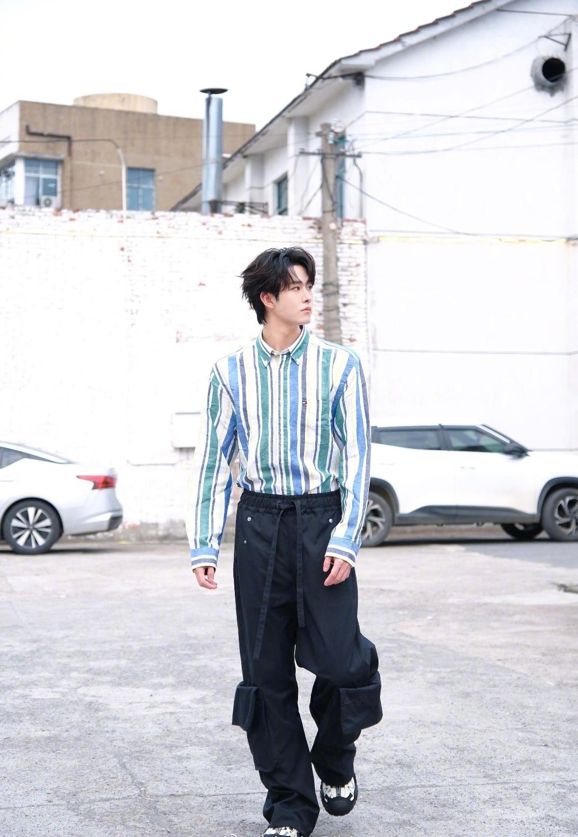 @田嘉瑞6 身着彩色条纹衬衫开启城市漫步模式。条纹元素碰撞春日活力,轻松营造美式休闲感。漫步街头画面清新自然,少年感扑面而来,直接出圈!