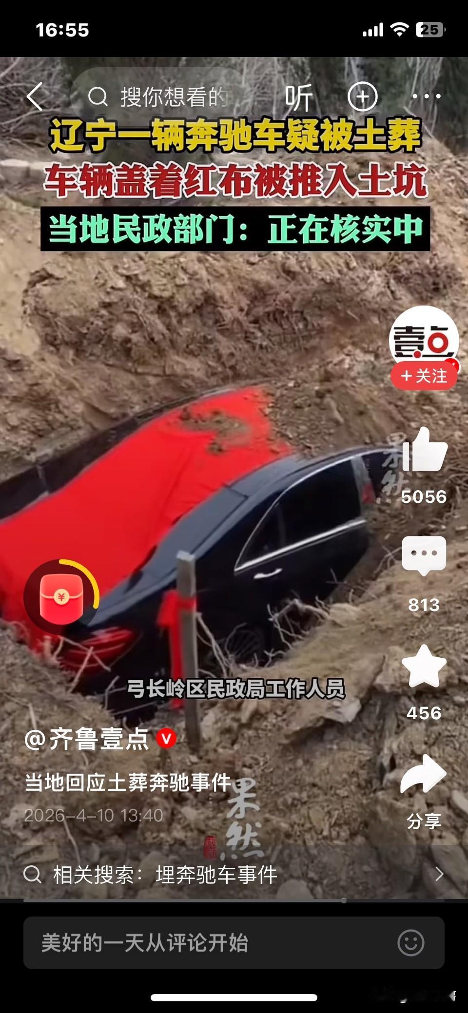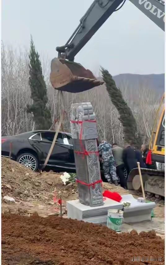 据说这家人家境殷实,为了让老人在“那边”也能风光体面,清明祭祀的时候,直接用一辆崭新奔驰车埋进墓地。