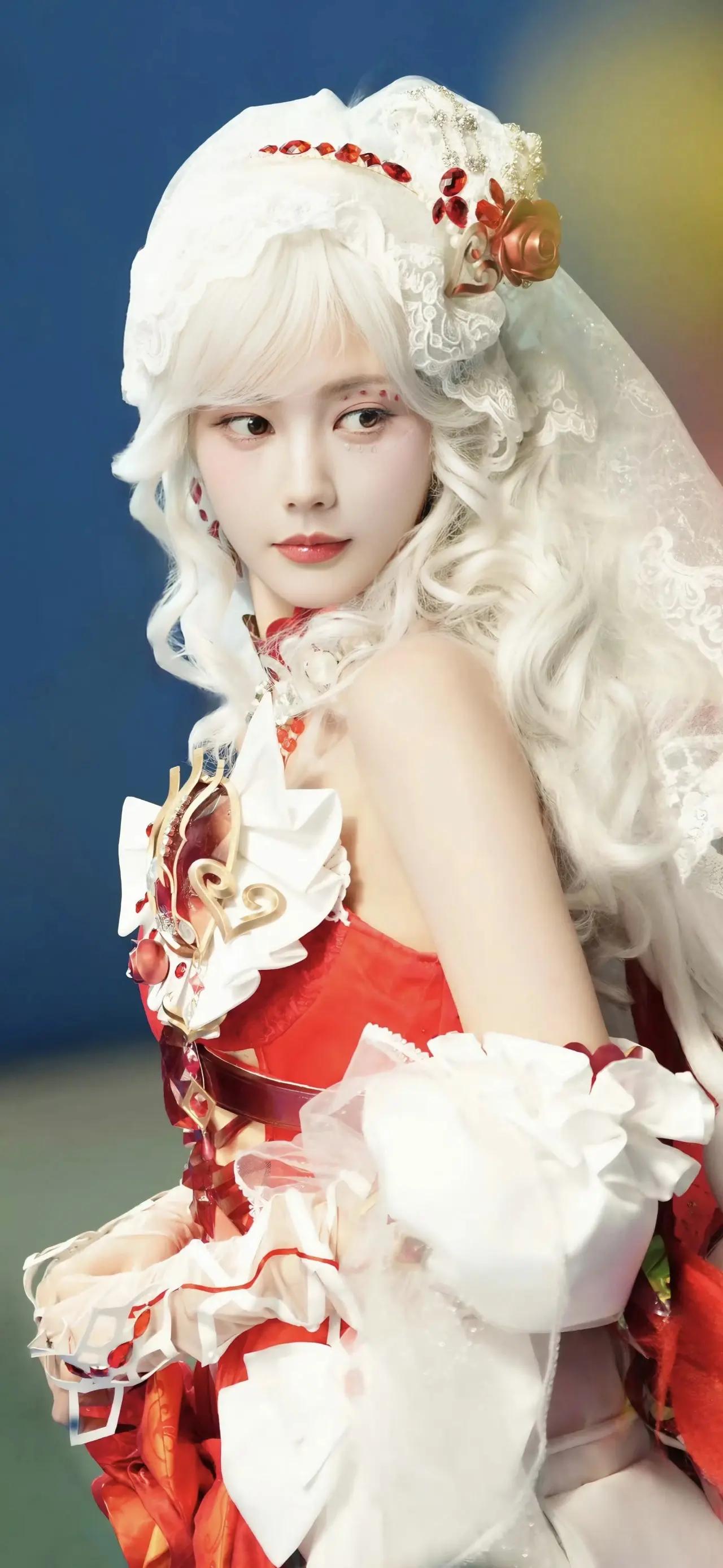 美女壁纸~李一桐,红裙映雪,玫瑰藏锋 银发卷浪间,是温柔与锋芒的碰撞; 蕾丝裙摆
