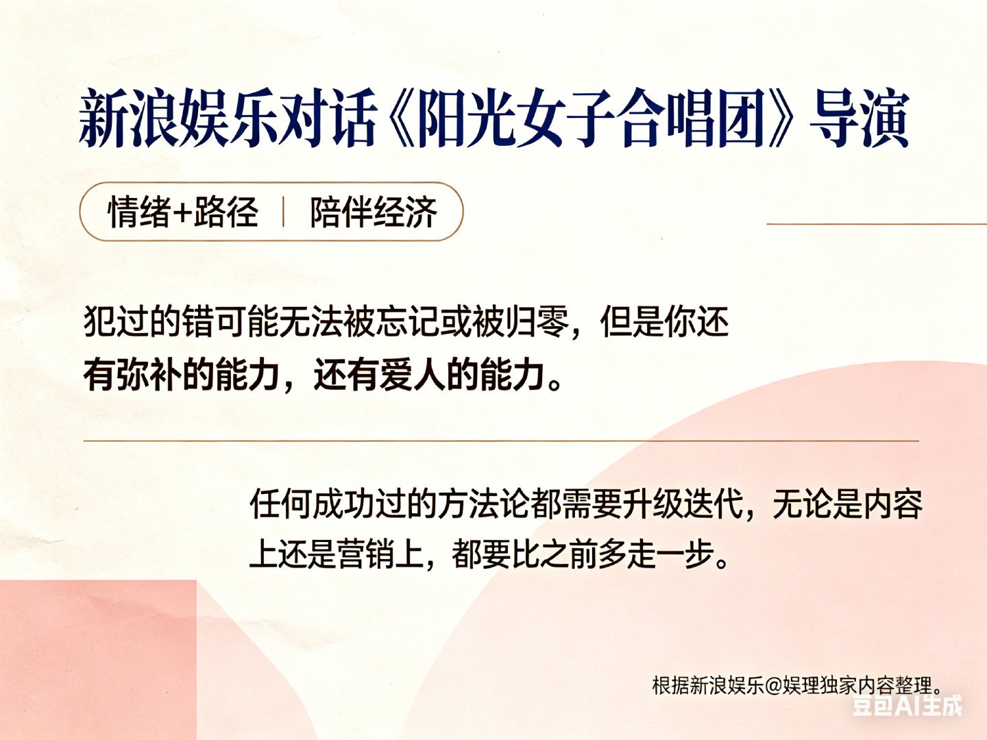 阳光女子合唱团原本是he 林孝谦导演说做哭片就像做麻辣锅 《阳光女子合唱团》导演林孝谦称自己泪点很高,被触动后写进剧本的4个哭点,分别是:送走小孩、相会、奶奶过世和演唱会。但是观众的哭点,往往和创作者的设计不一致,观众会找到自己的点,他只需要像做麻辣锅一样,做到最好就可以了。