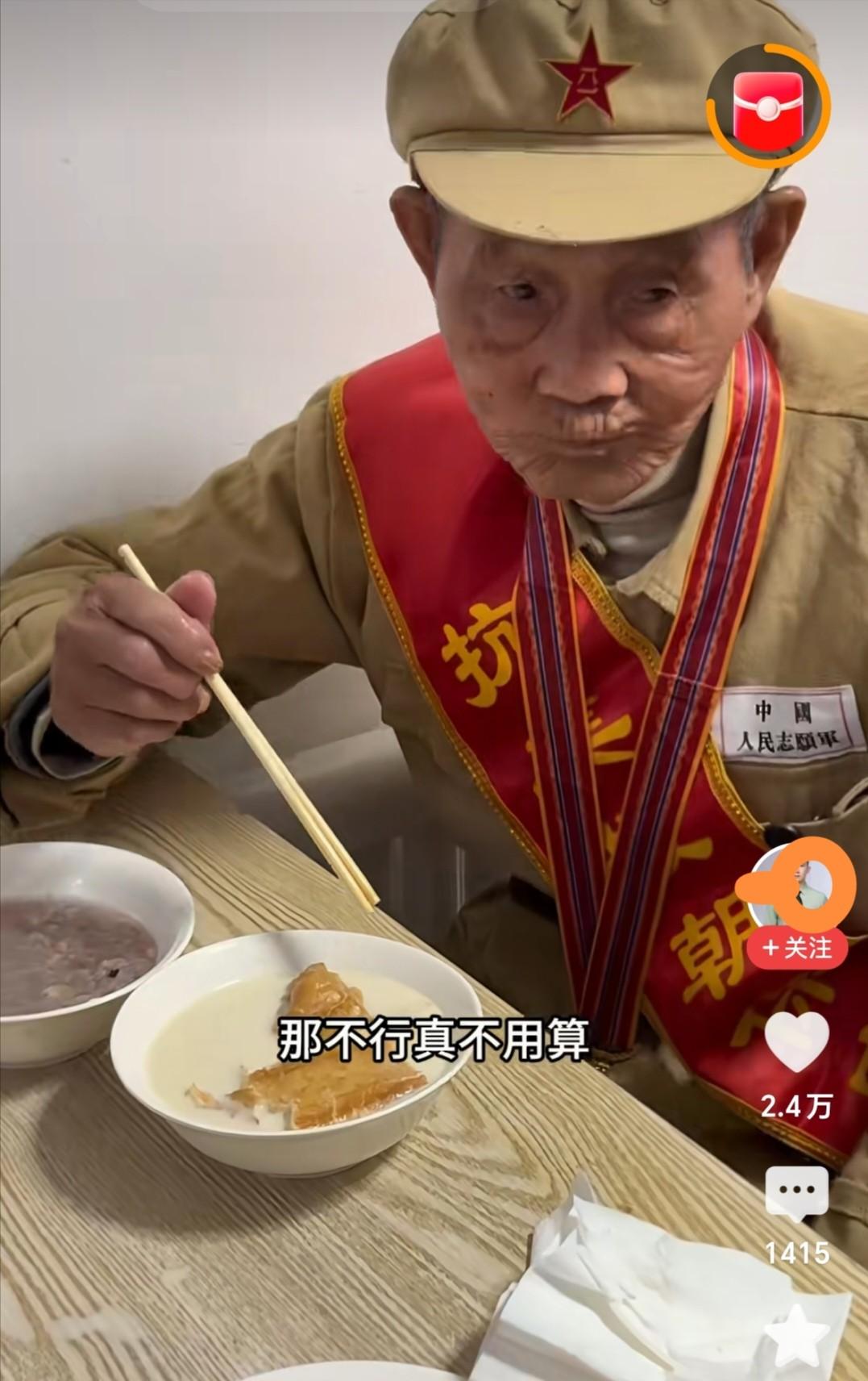 参考信息:东北新闻网.(2026,4月10日).温暖全网!抗美援朝老兵吃早餐,丹东包子铺店主夫妻坚决不收钱。
