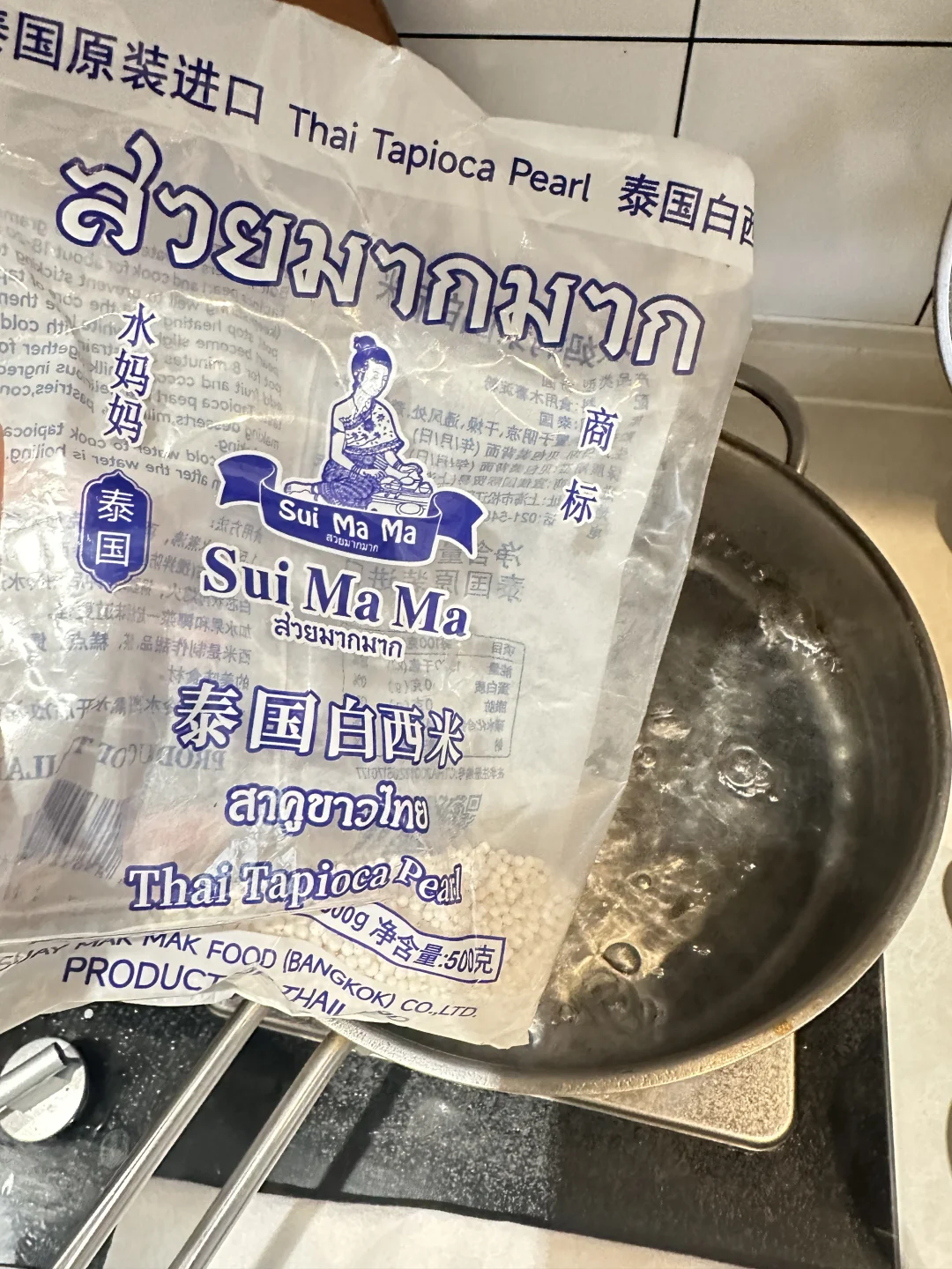 再煮了碗西米露,搭配牛奶喝。
