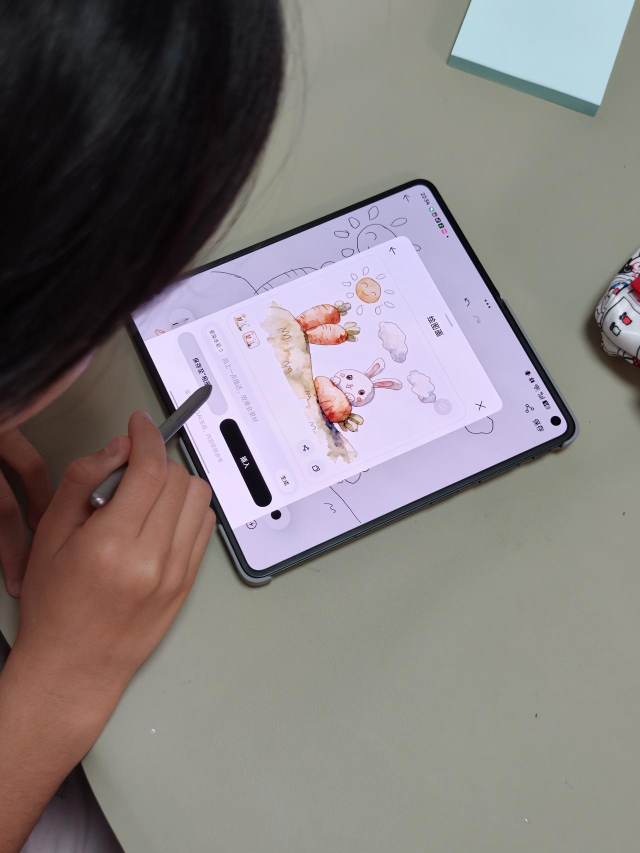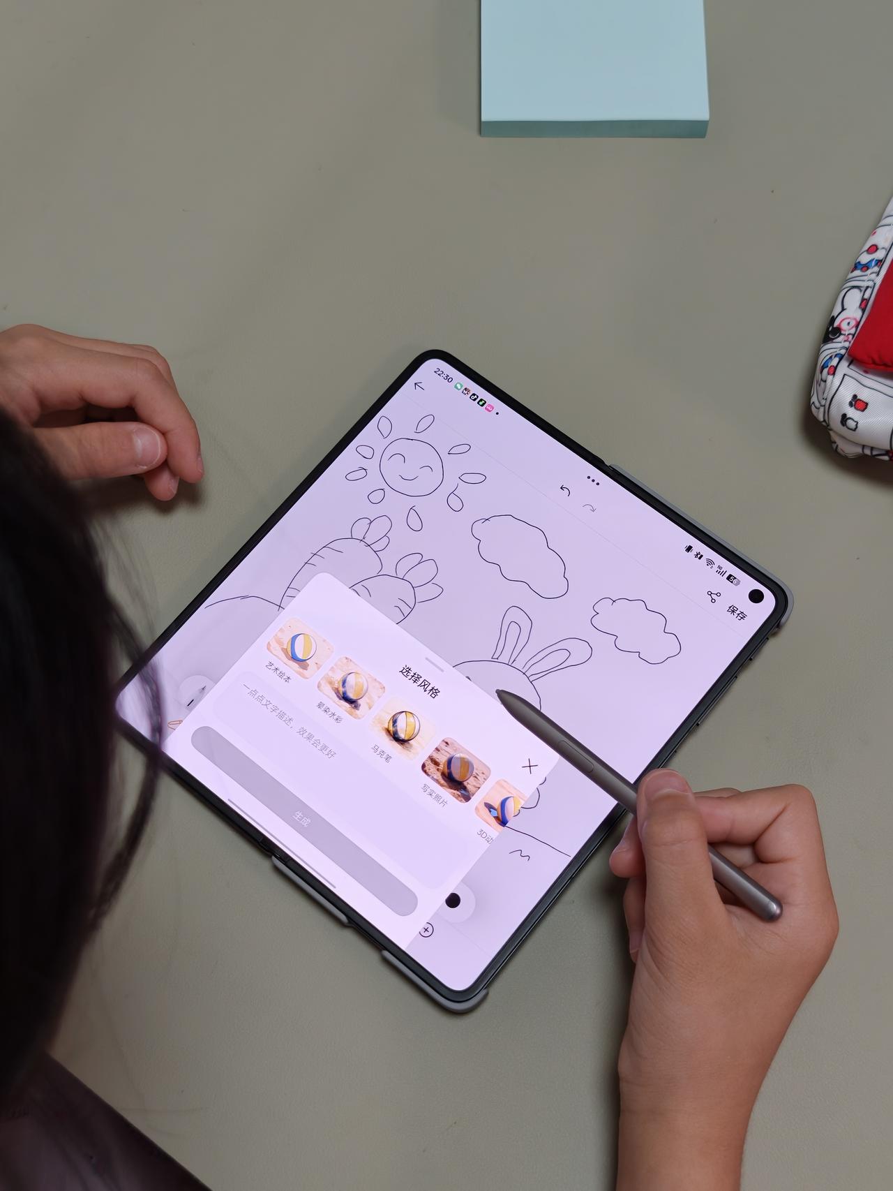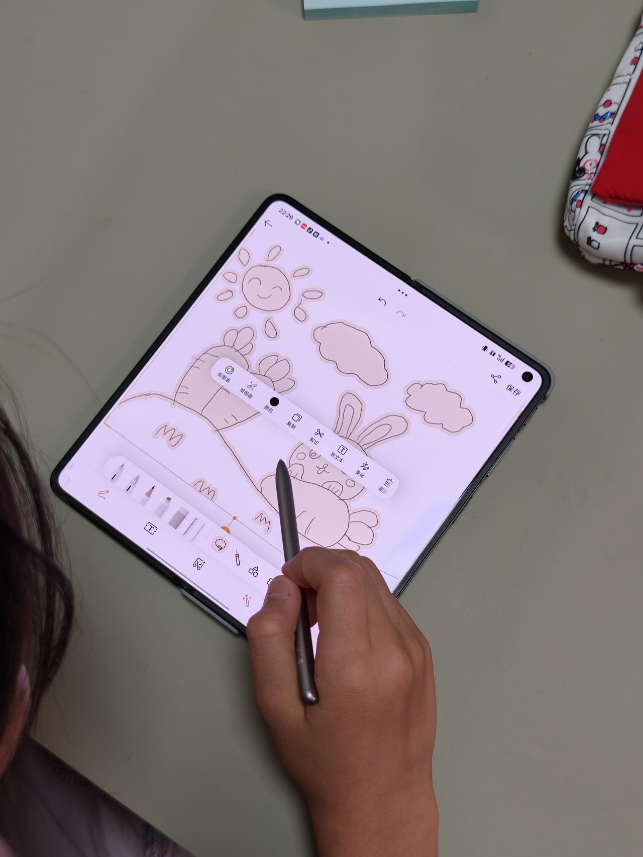 Find N6展开后折痕确实不明显,触感和直板屏没差别,手写笔滑动也顺滑。AI上色功能对带娃的人来说太省心了,还能让孩子自己发挥创意。平时自己拿来追追剧,现在当小孩的画板也挺合适。