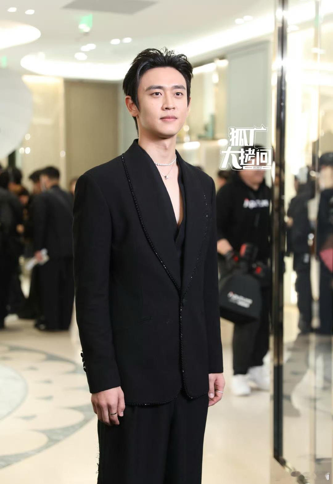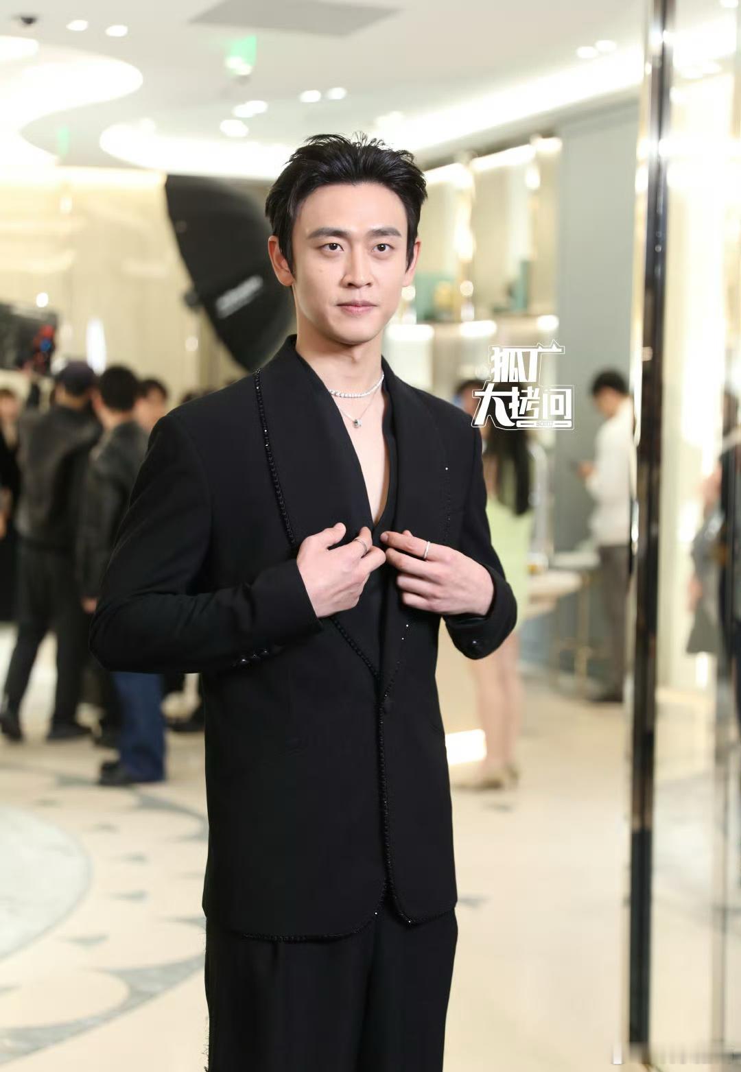 王天辰今日线下活动直拍来啦,allblack深V亮钻西装好daddy感