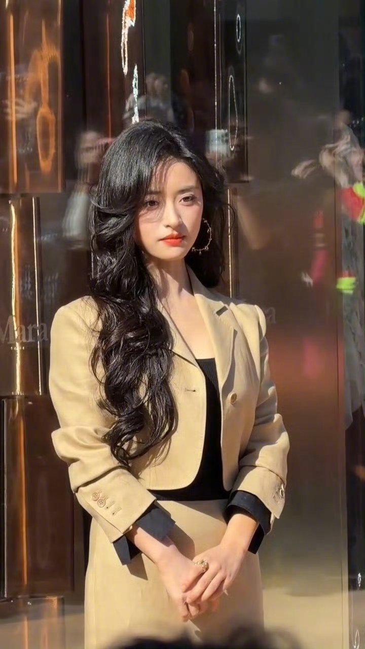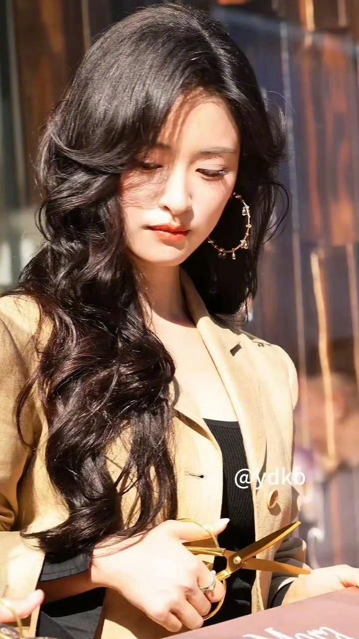 沈月大波浪红唇造型好明媚的大美女月月今天的造型真的美炸了