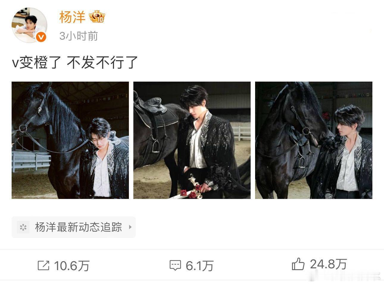 杨洋第三次守护金V 杨洋发博可断美图可留金V不能丢杨洋守护金V的样子也太真实了,