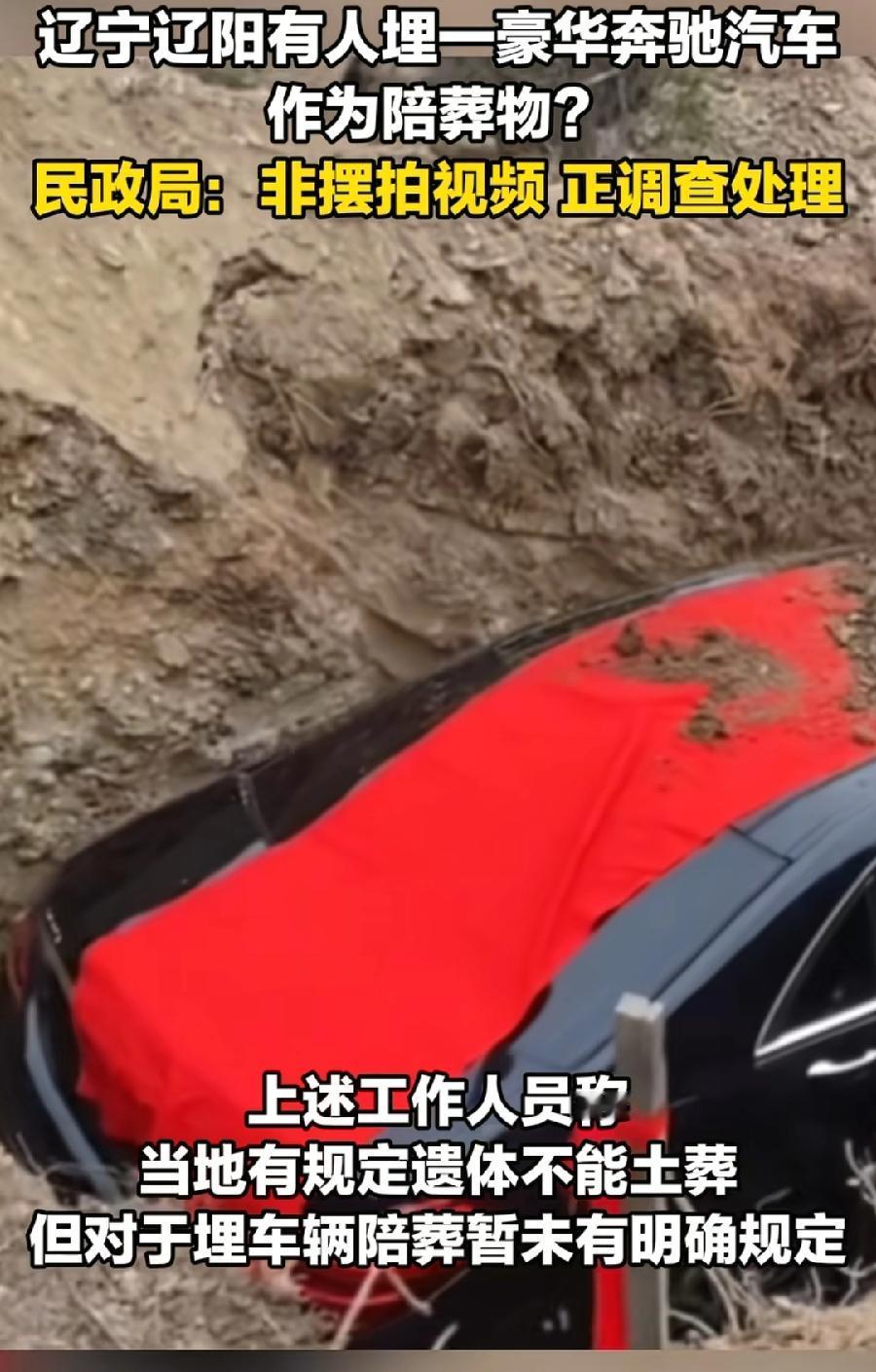 之前见过各种物品陪葬的,赔一辆奔驰车,真的第一次见,疑惑的是,封建迷信活动,陪葬什么不行,非要埋这么大这么昂贵的汽车,这是迷信的什么?去世的人能用到的吗!通过这个事件充分说明,移风易俗,非常有必要,非常重要!