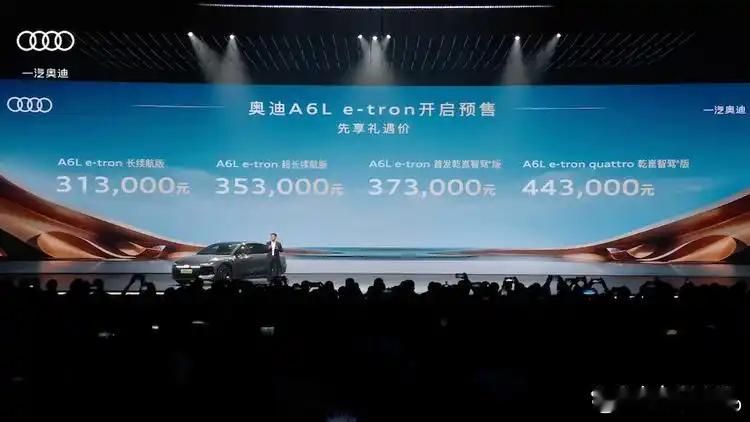 A6L e-tron价格30.98万元起售。华为版的369,800元起步,quattro乾智驾版价格439,800元。这个价格比预售的时候差不多降低了5000元。降幅多,看起来是没有太多空间了。奥迪因为在材质的高要求,定价的空间有限。A6L e-tron卖的比油车还便宜,这真的是很少见。