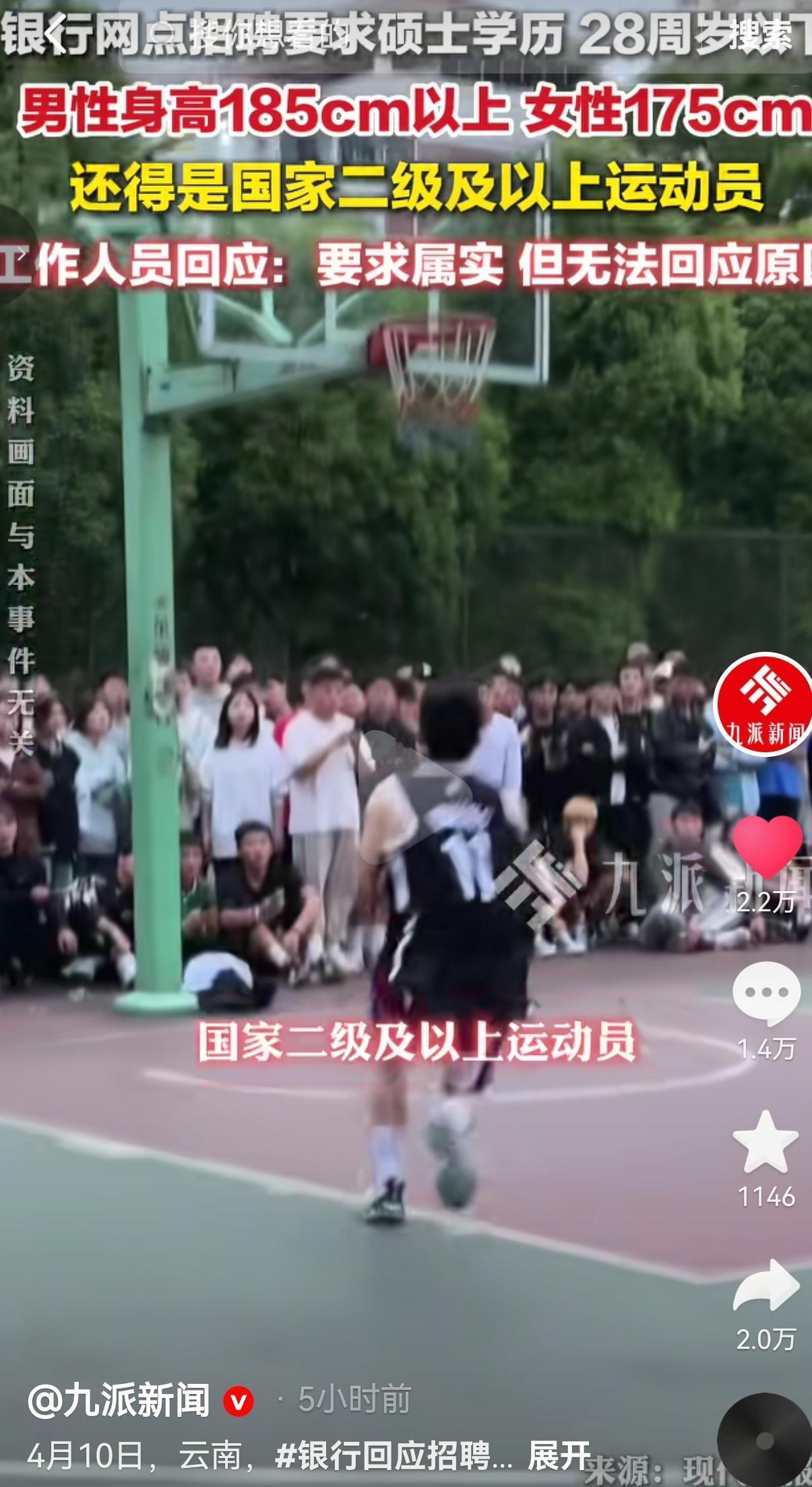 谁能想到,一个普通银行网点岗位,要求硕士学历、男185cm/女175cm、国家二级运动员,