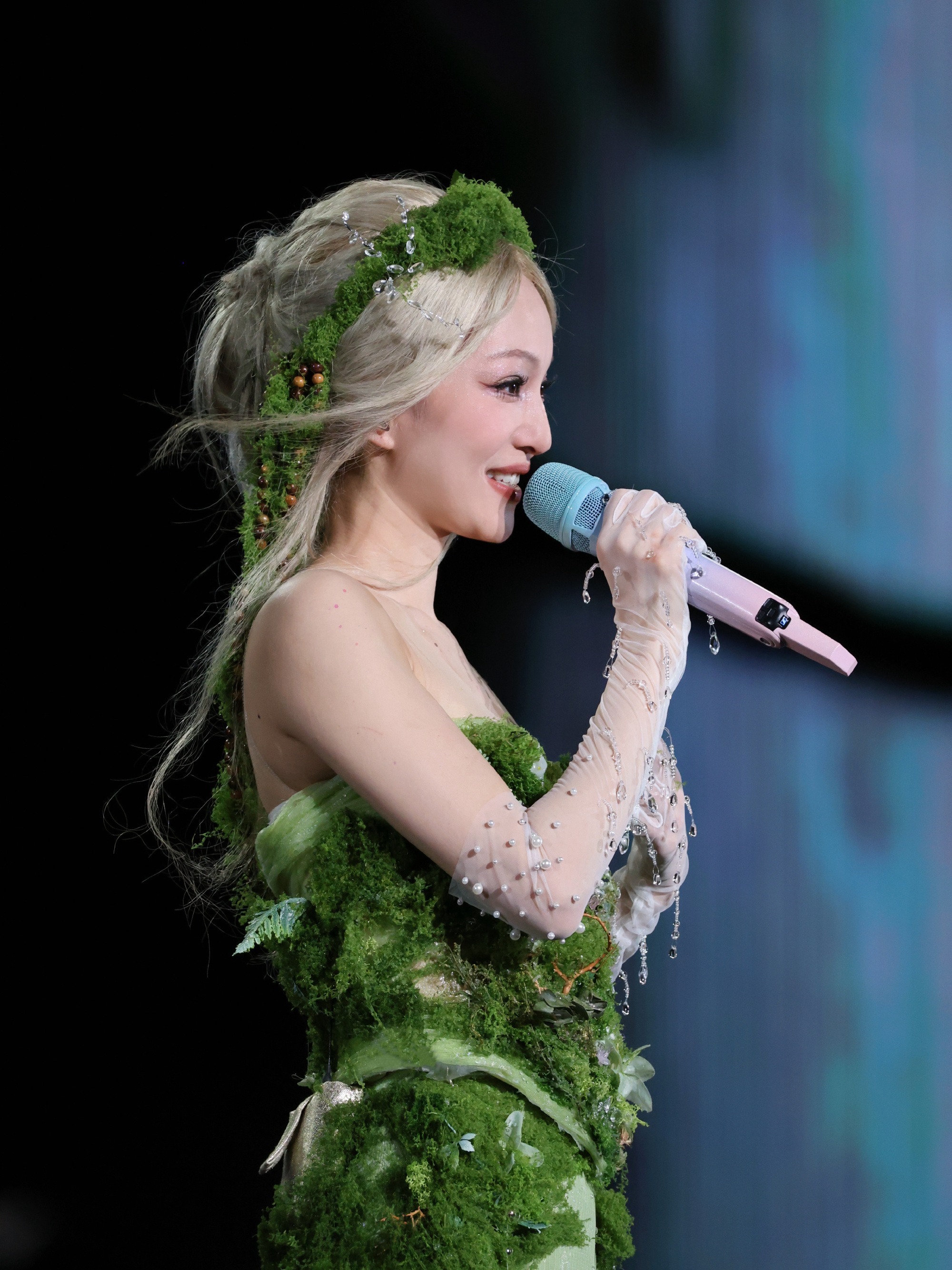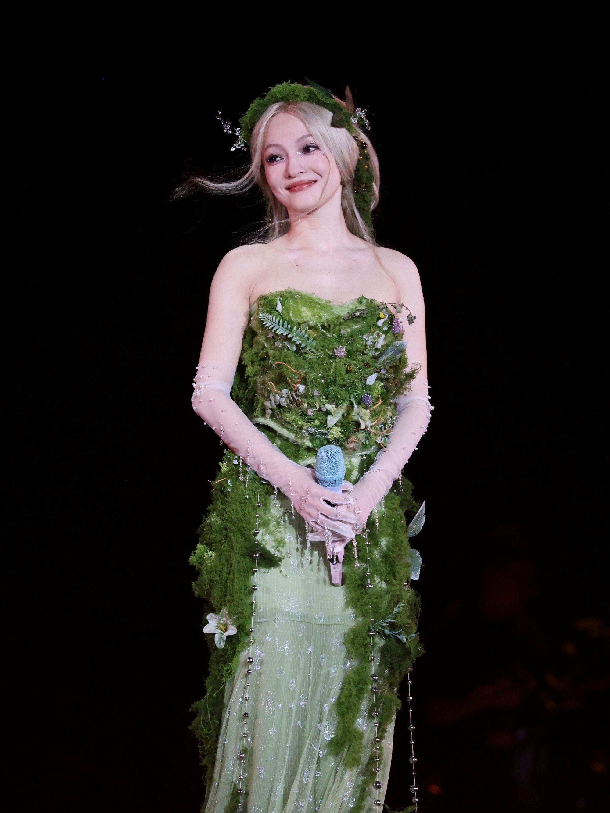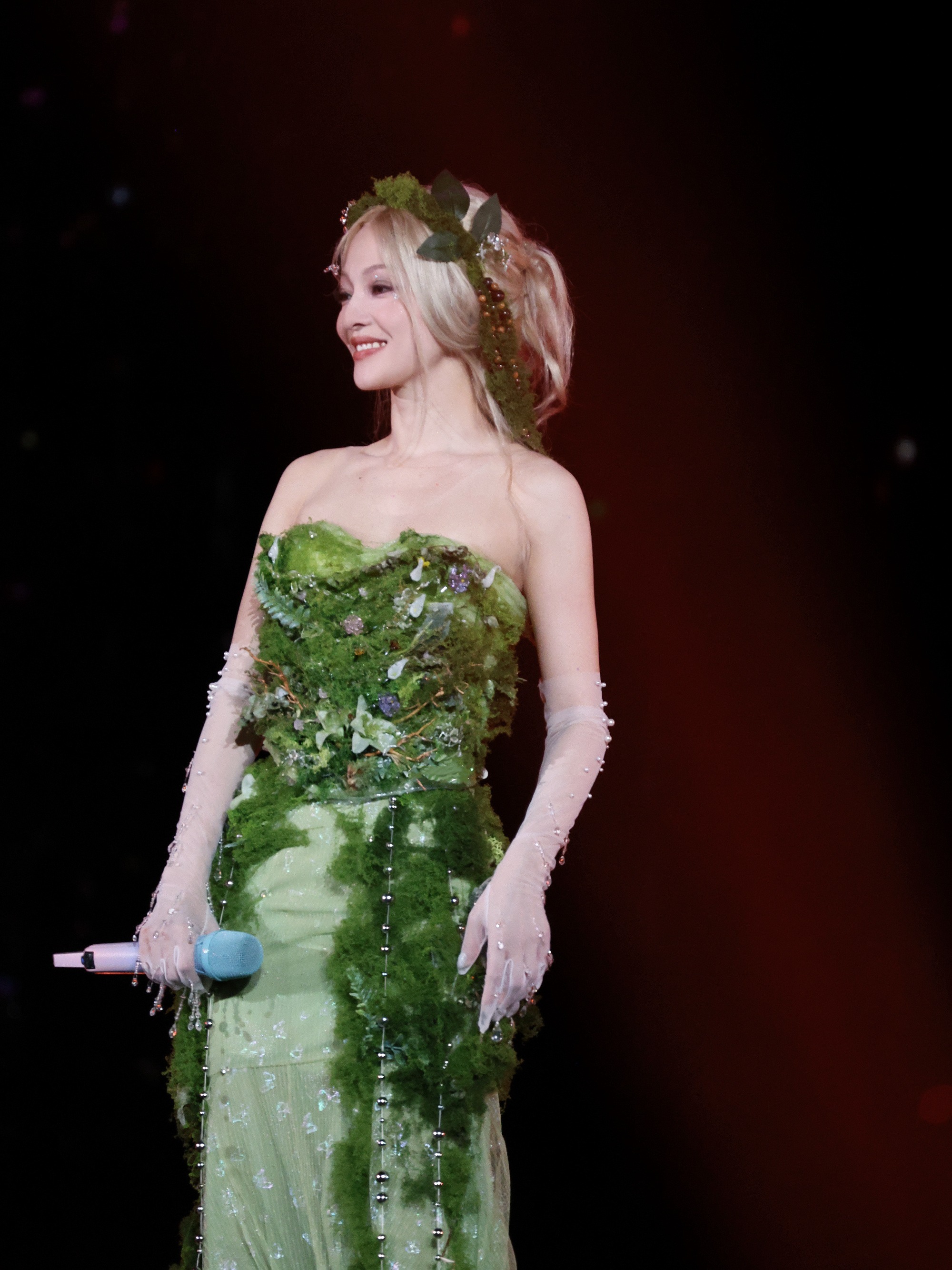 张韶涵,舞台上唯美的绿裙仙子。张韶涵